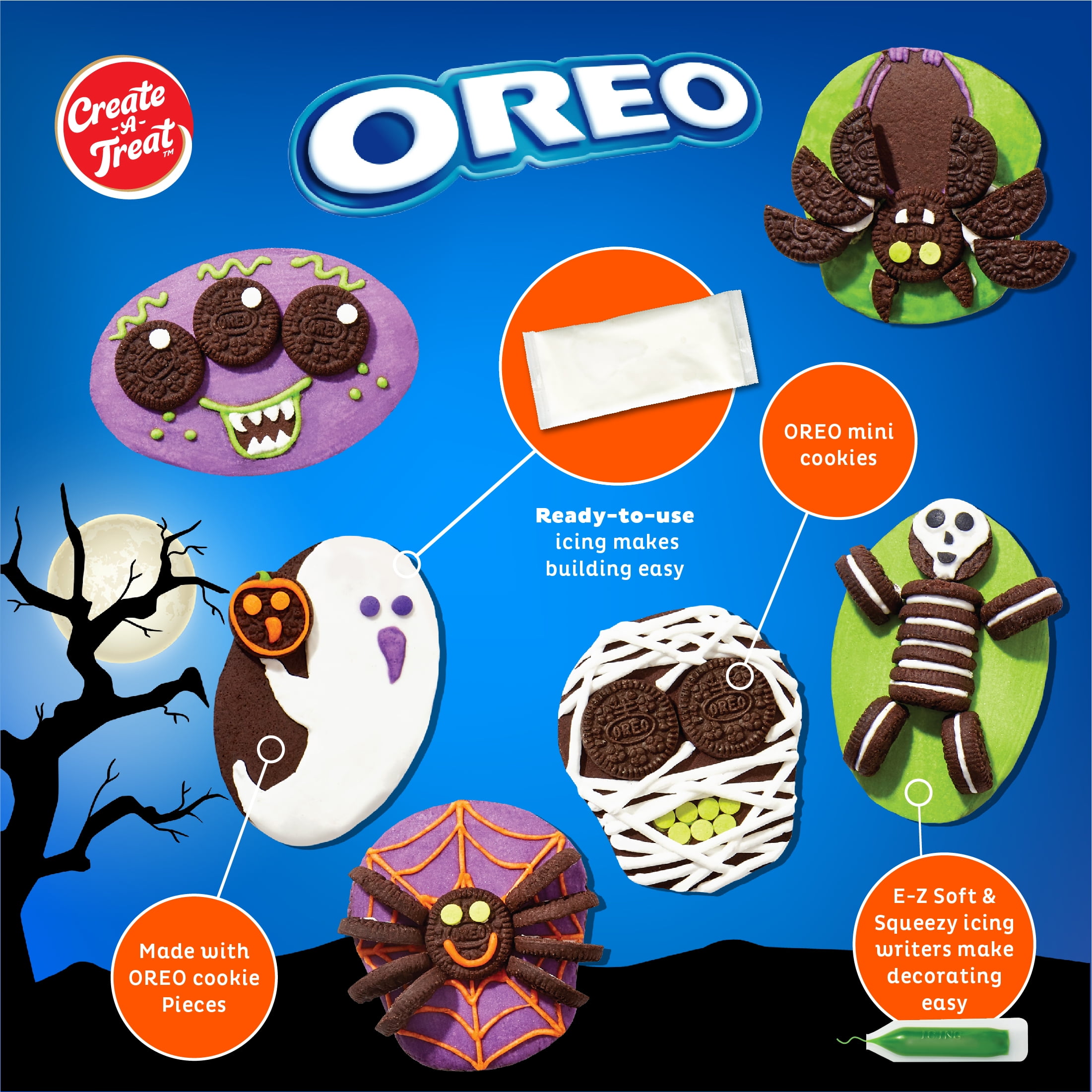 - This kit comes with Oreo-flavored pre-baked cookies, Oreo-Crème pre-made icing, OREO mini cookies and candy