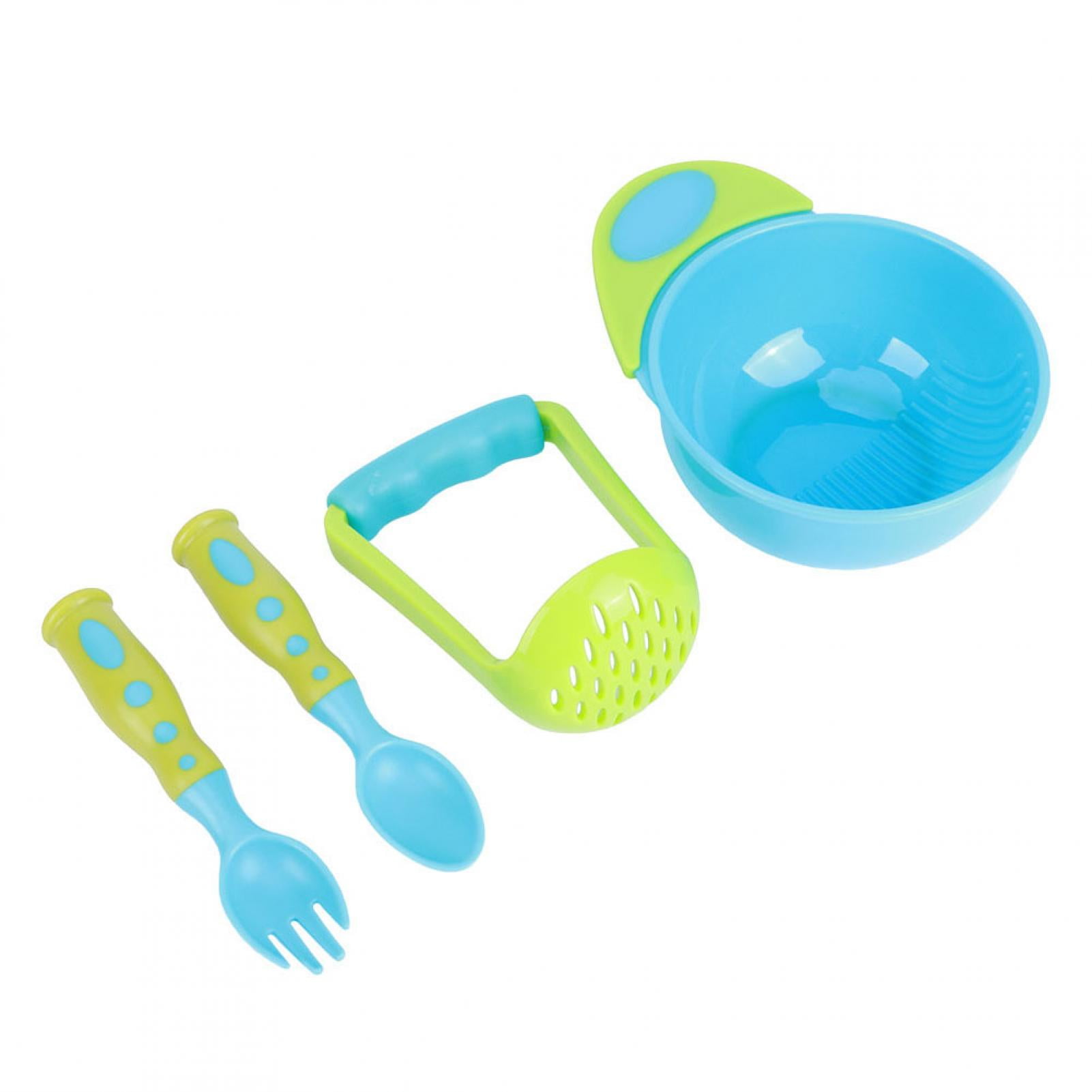 Infant Freshfood Masher, Bowl Spoons Set, 4pcs Baby Food Masher, for Home Baby Mash Fine Food Mash Blue and Green