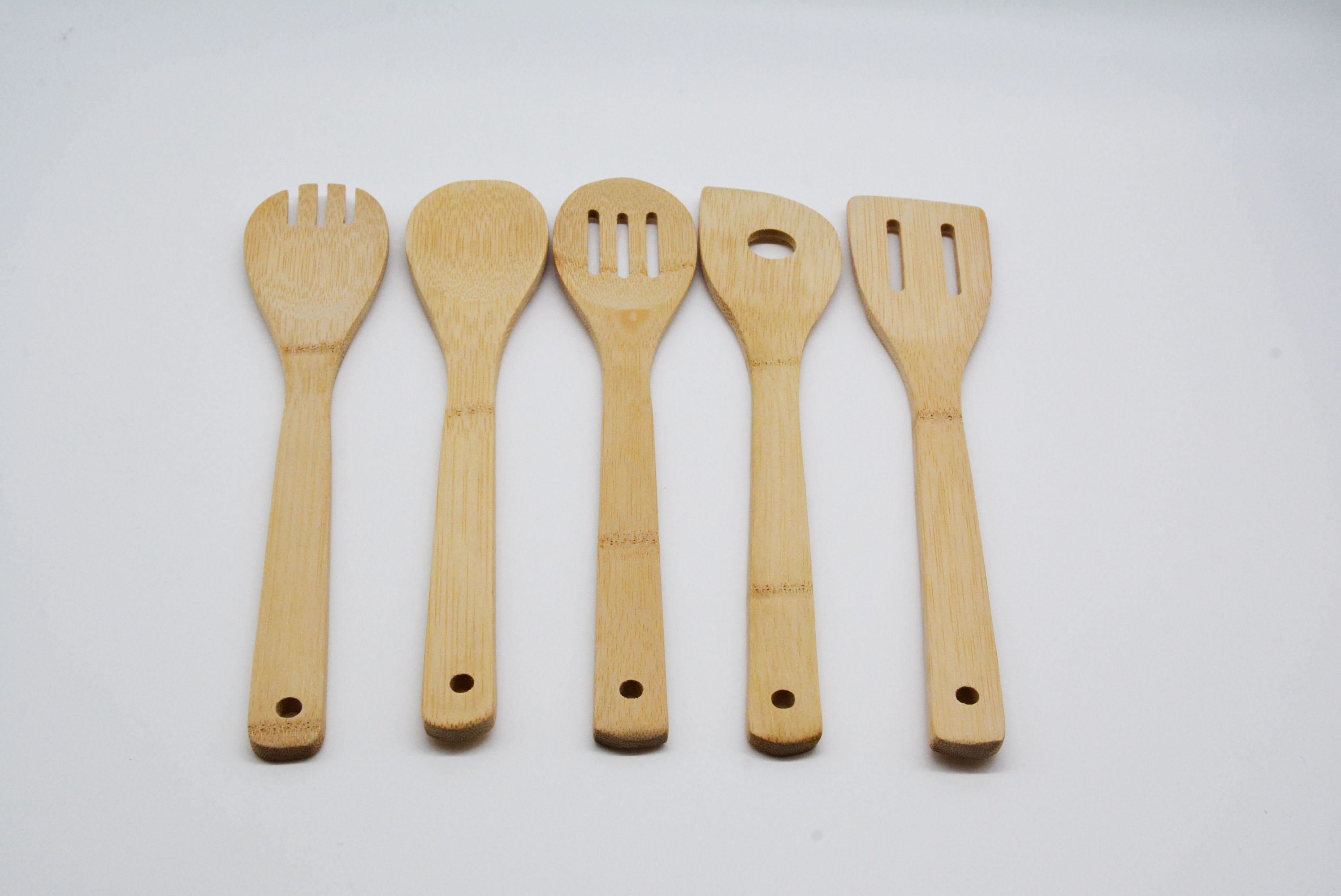 - Easy to Clean- This 5 pieces kitchen toolset is very easy to clean with just some soap and water. We recommend that you do not soak it or use the dishwasher to clean it, as this may damage the natural bamboo surface.