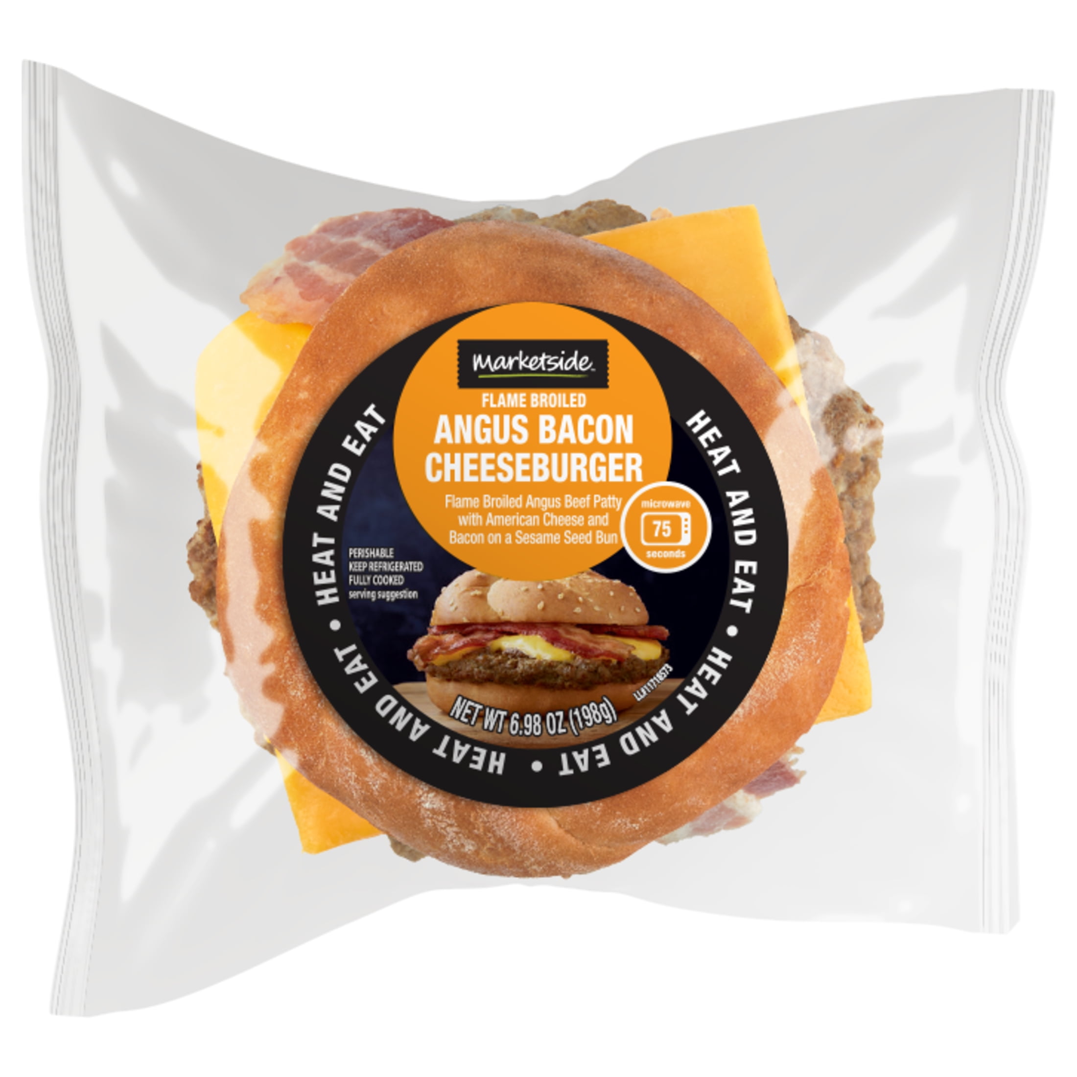 Marketside Angus Bacon Cheeseburger Flame Broiled, 6.98 oz, (Deli Heat & Eat)