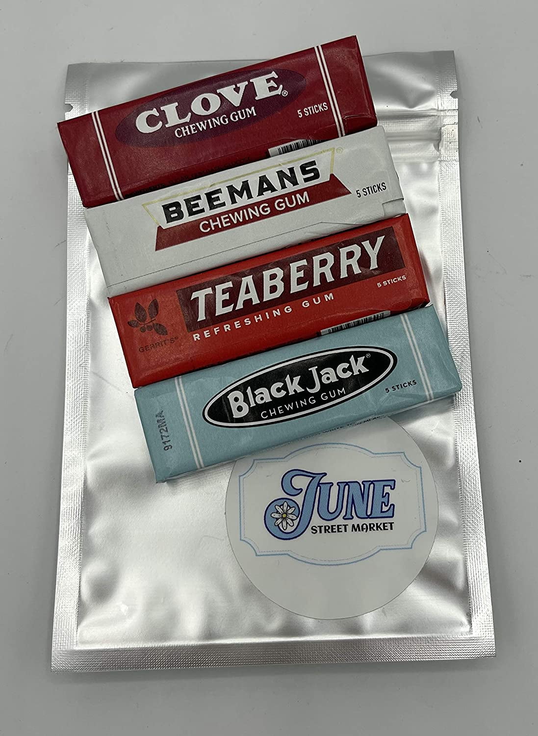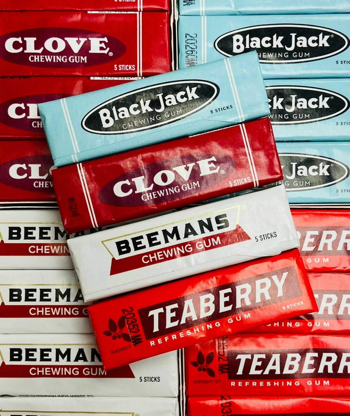 - One (1) Pack of Each Flavor: Black Jack, Clove, Beeman’s and Teaberry