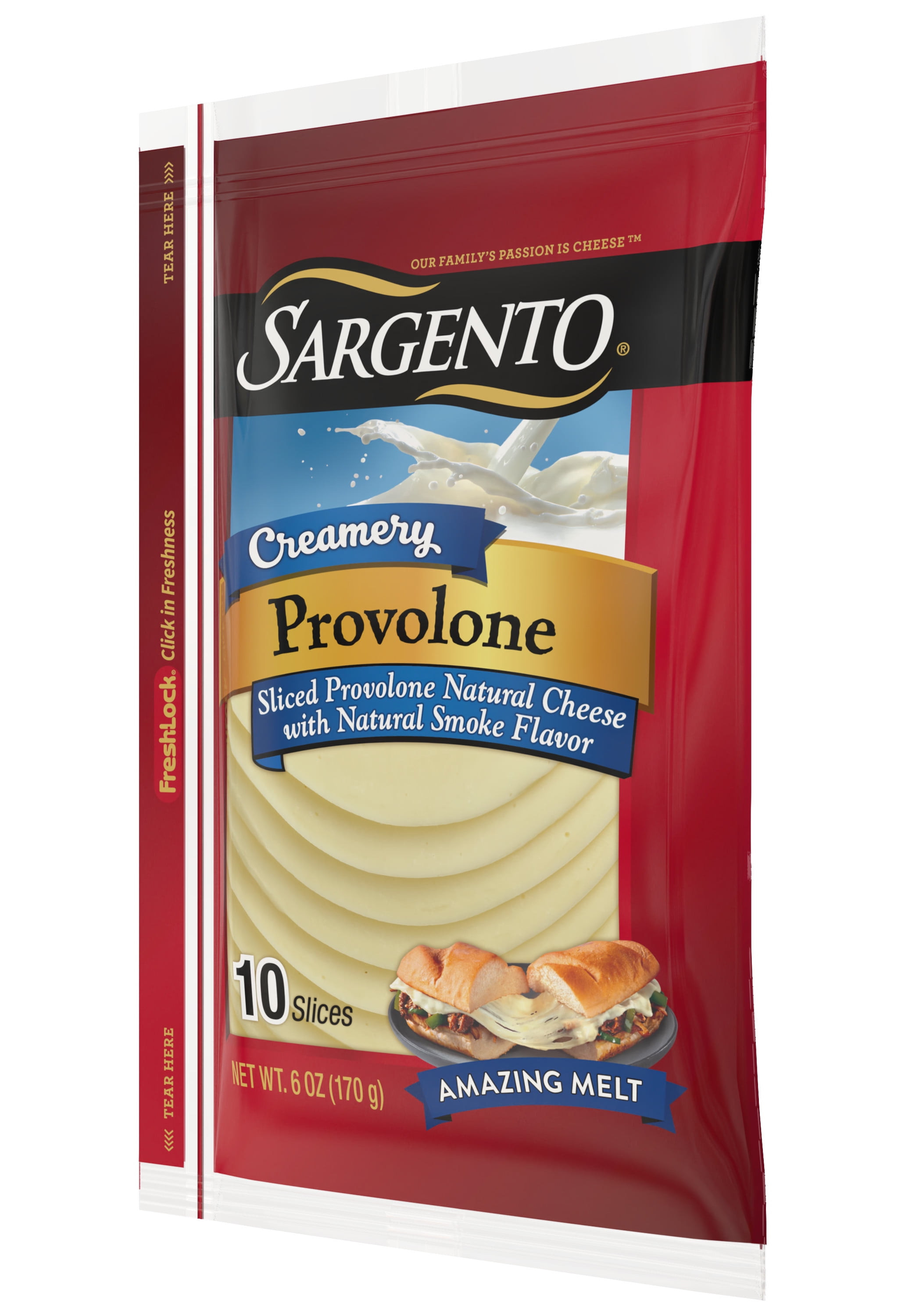 - This 6-oz. package of Sargento® Creamery Sliced Provolone Natural Cheese contains 10 slices of cheese
