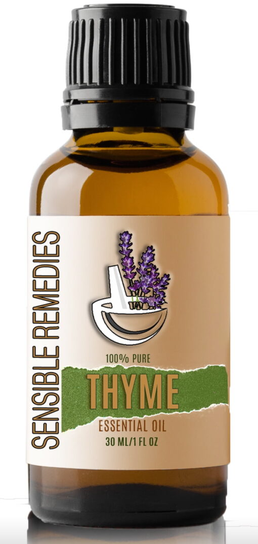 100% Pure, undiluted, therapeutic grade Thyme Essential Oil in a 30 mL amber glass bottle with a euro dropper cap. Steam distilled from the Thyme herb, this high quality essential oil will work wonderfully for all of your aromatherapy needs.Oil Name: Thyme; Botanical Name: Thymus vulgaris; Color: Clear with a yellowish hue; Method of extraction: Steam Distilled; Consistency: Thin; Aroma Strength: Medium – Strong; Aroma description: Fresh, medicinal and herbaceous.; For external use only; Bottle contains 30 mL (1 fl oz) of Sensible Remedies essential oil
