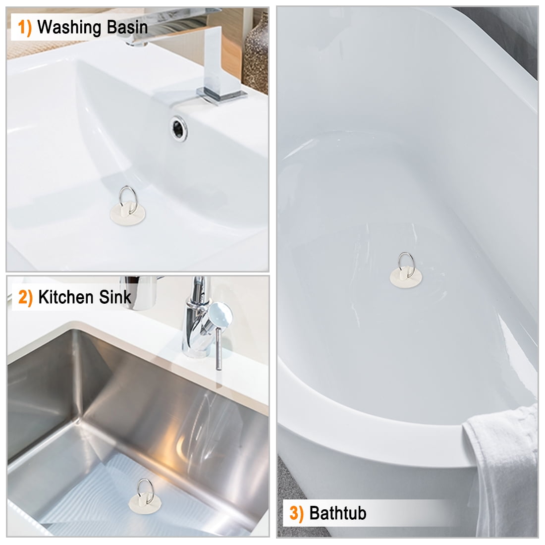 - Package Content: 1 x Rubber Drain Stopper (Small Size); 1 x Rubber Drain Stopper (Medium Size); 1 x Rubber Drain Stopper (Large Size)