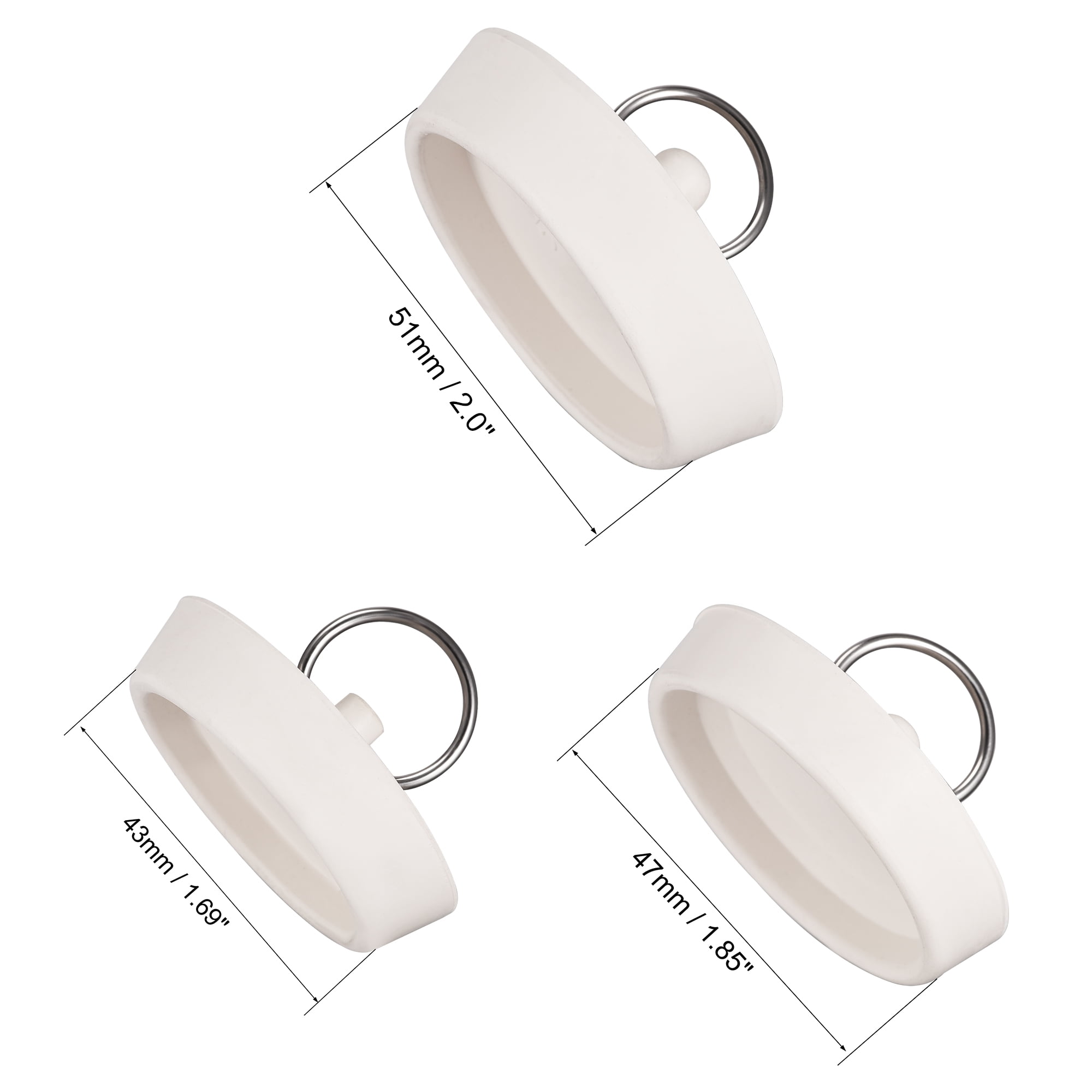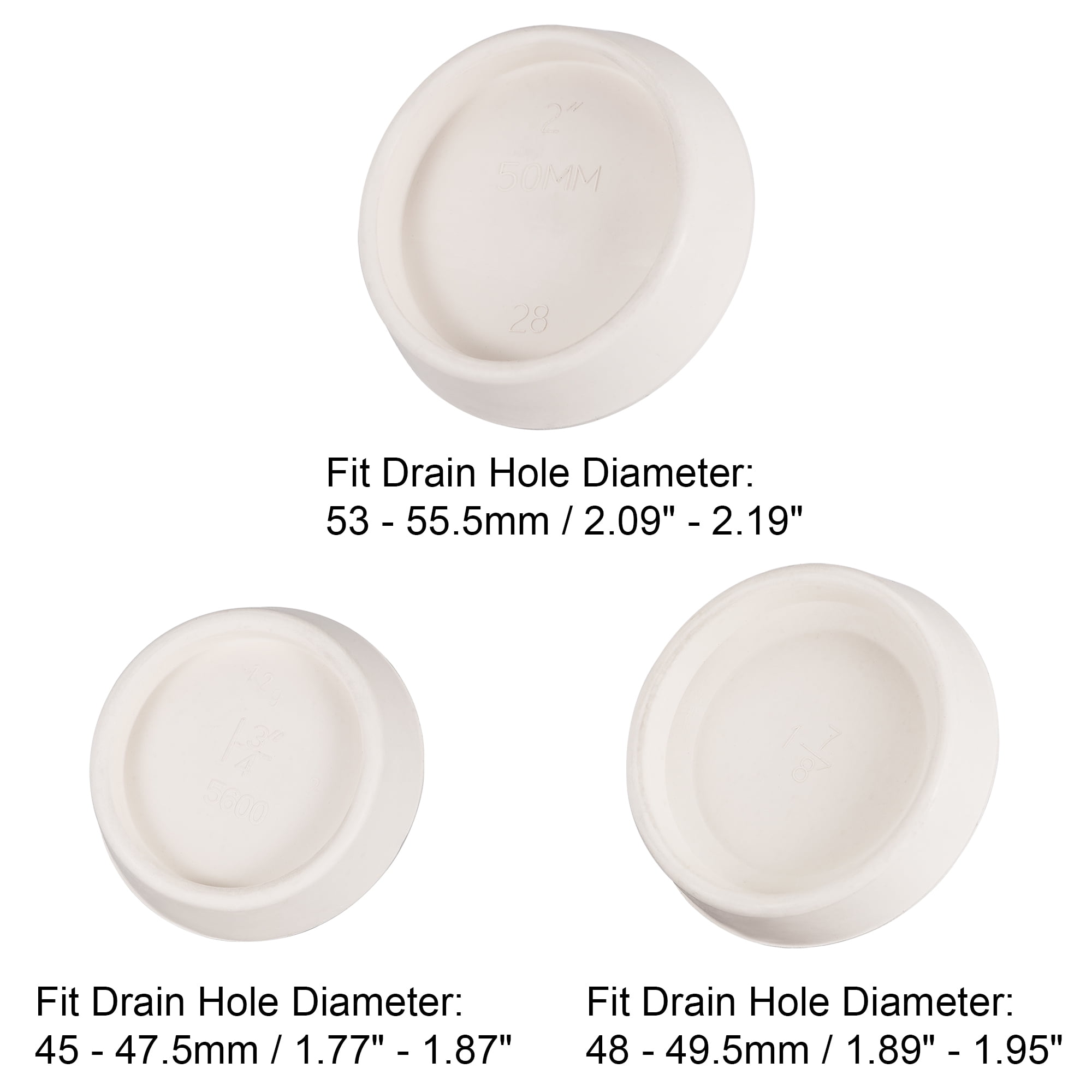 - These drain stopper sets include 3 different sizes for 45-47.5mm, 48-49.5mm, 53-55.5mm drain holes.