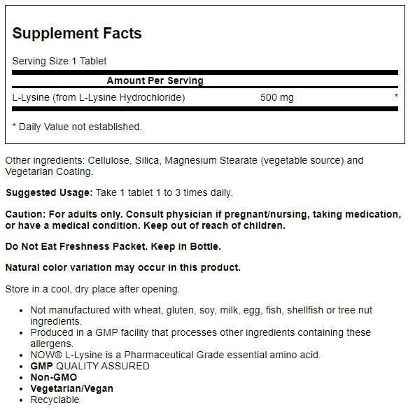 NOW Foods L-Lysine 500 mg 100 Tabs