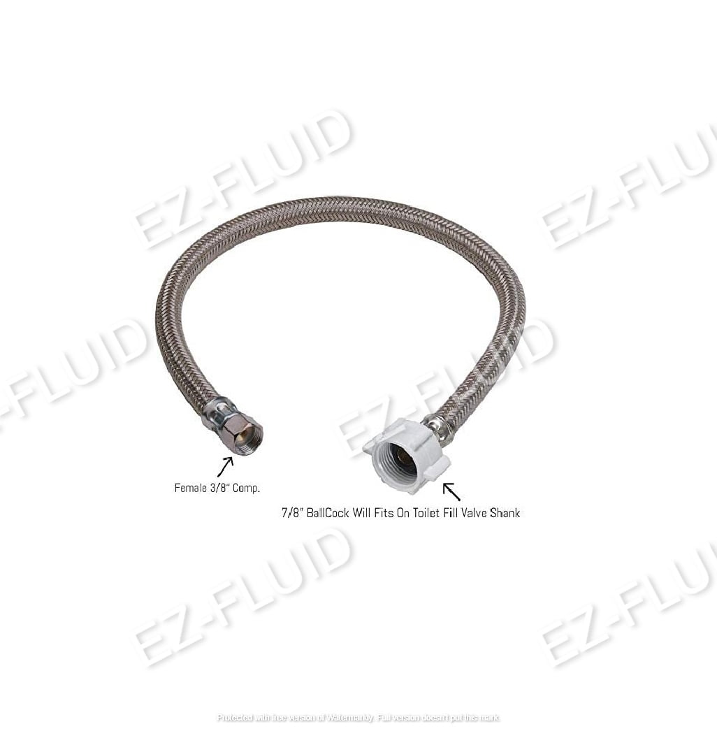 - EZ-Fluid 20" Toilet Water Supply Connector, Braided Stainless Steel – 3/8“ Female Compression Thread x 7/8” Female Ballcock Thread 20-Inch Toilet Water Connectors ,Braided Stainless Steel Toilet Connector Stainless steel braiding for extra protection