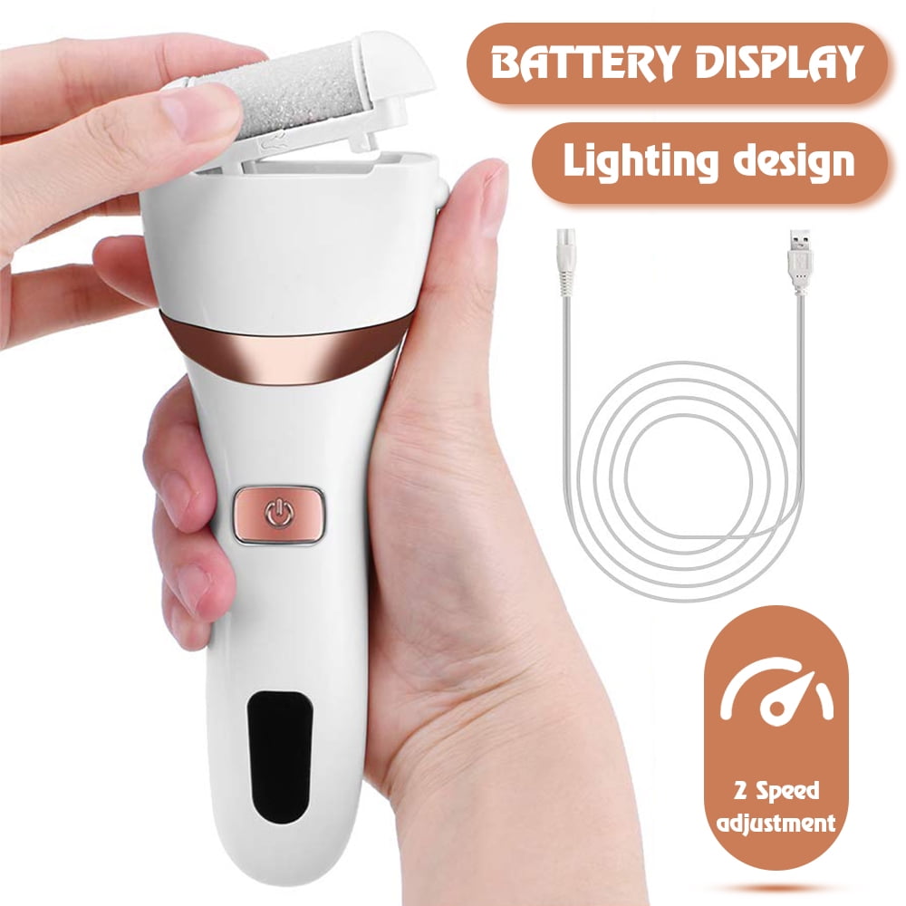 【4 Multifunctional Roller Heads】: Women callus remover foot file has 4 different function attachments, a coarse roller head for tough and hard calluses, a fine coarse roller head for daily maintenance, a epilate head for deep hair removal to prevent regeneration and a curved razor head for removing hair from the arms, legs, and bikini area. Choose suitable grinding head according to your need, enjoy a spa-like pedicure at home, give you delicate and smooth skin.