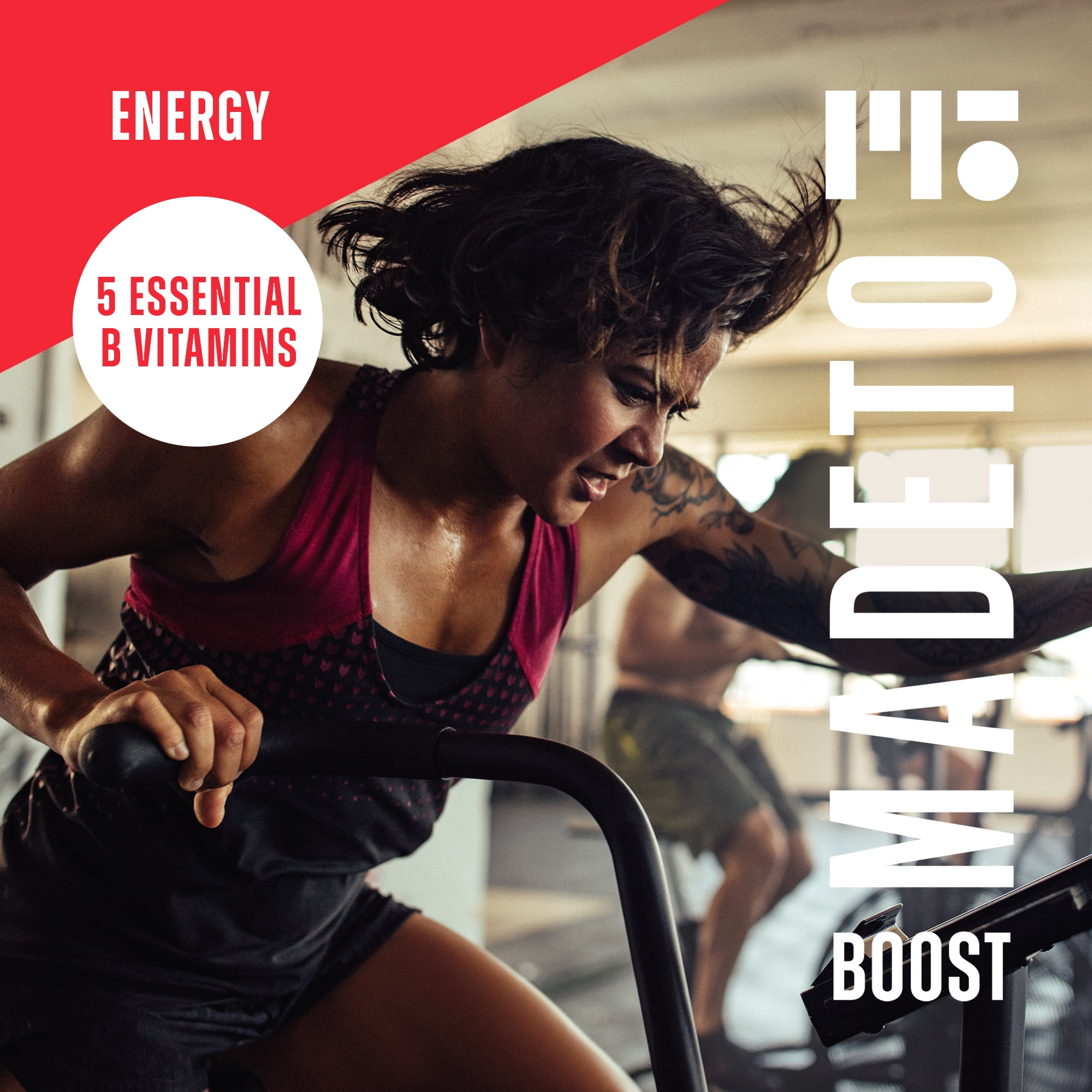 Everyone needs an energy boost now and then. And sometimes that boost needs to have extra intensity. MadeTo makes it easy. These convenient Extra Strength Caffeine & B Vitamins Shots are a quick, refreshing energy boost. The compact size makes them easy to tuck here, there, and everywhere – ensuring anytime you need an energy boost, it’s there. With grape flavor and only 5 calories, it fulfills your needs while also being tasty and guilt-free. Made for you. Made to boost.