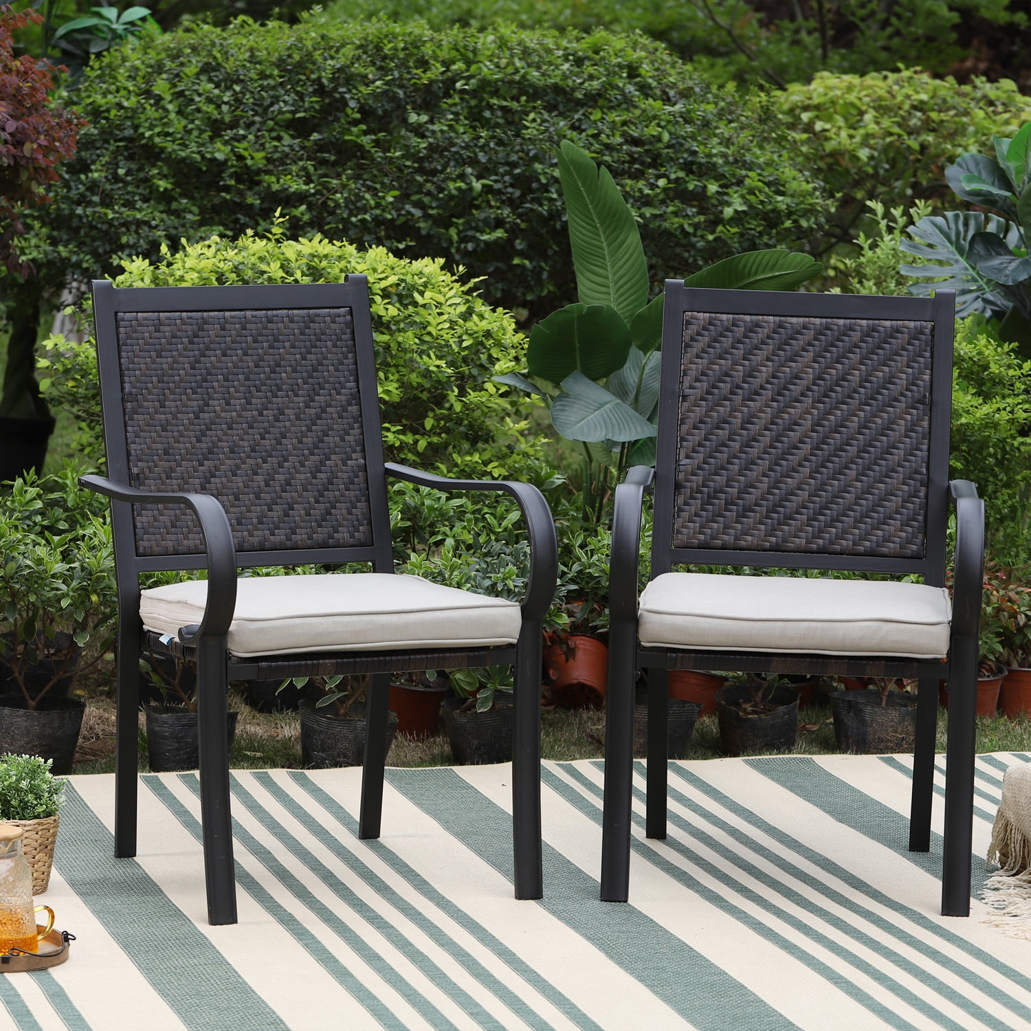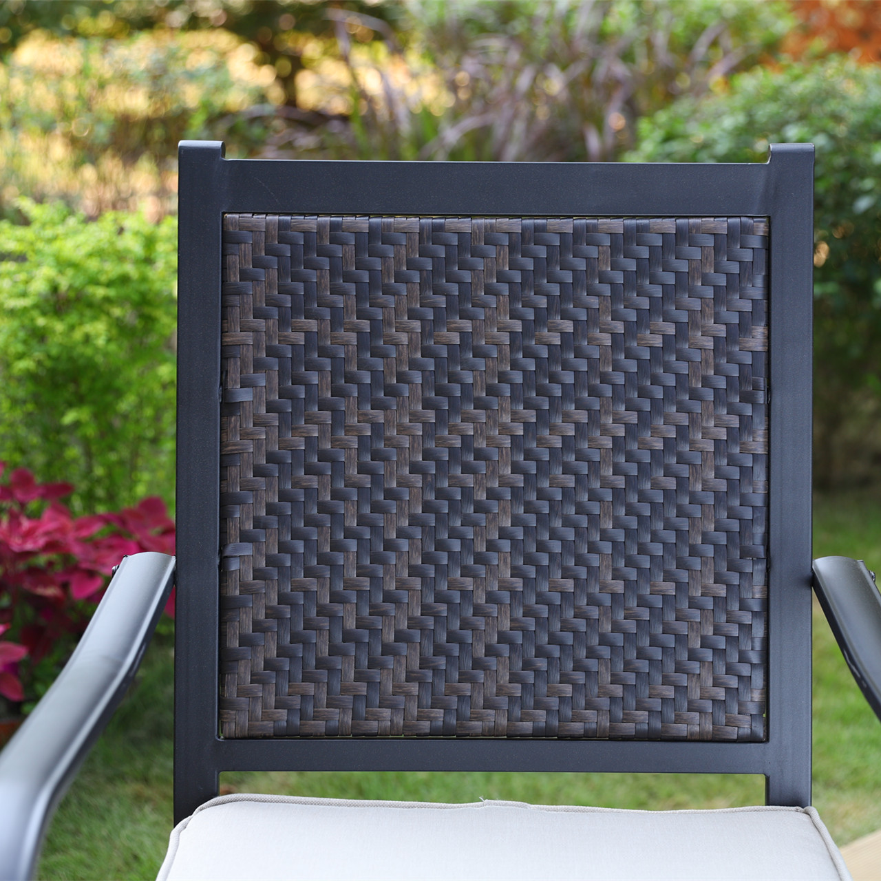 - Sturdy and all Weather Resistant:The seat and back of chairs are made of tightly woven weather-resistant rattan, UV & fade resistant, long service life for all seasons. Sturdy steel frame treated with coating for weather-resistant and corrosion-resistant. Metal steel with E-coating dining table, weather resistant and built for last. Table top with 1.57" umbrella hole is suitable for most patio umbrella.