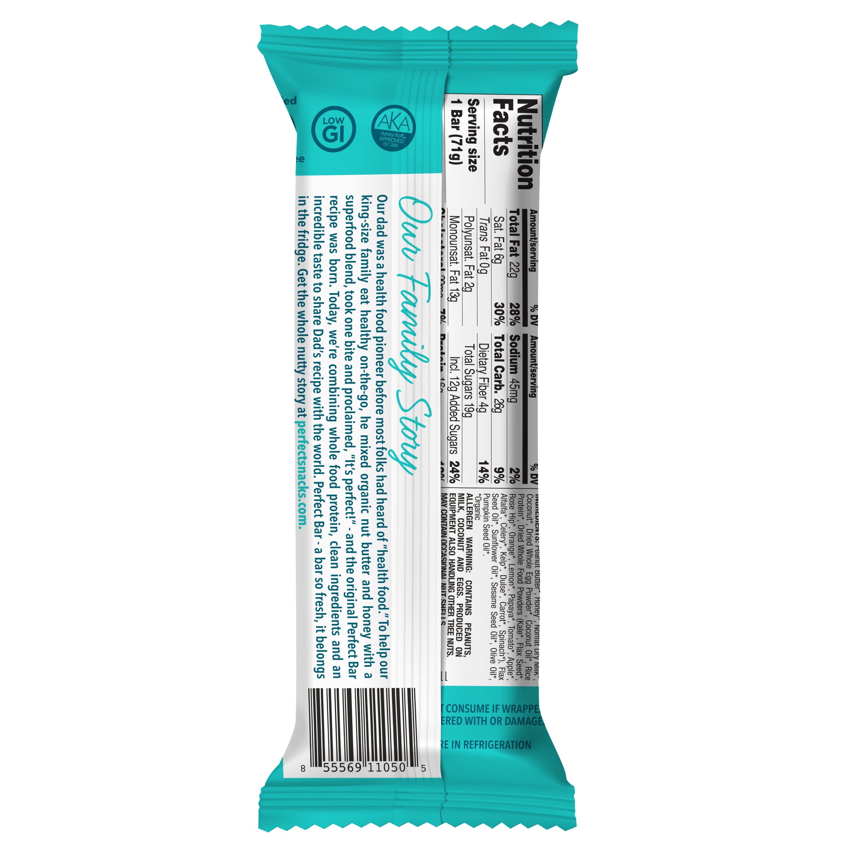 - COCONUT PEANUT BUTTER PROTEIN BAR: Made with ground nut butters & organic honey, Perfect Bar is a delicious blend of creamy and crunchy with a cookie-dough-like texture. Nutritious, delicious & truly tasty!