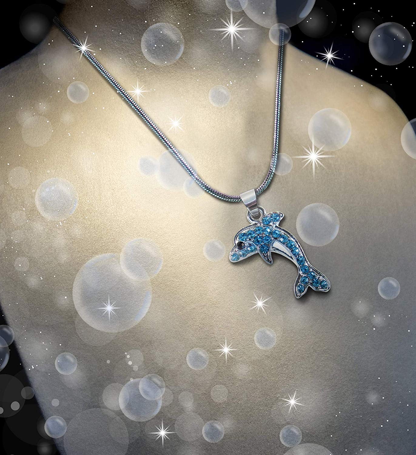 - CUTE & FUN SILVER NECKLACE – A cute and fun silver necklace with sparkly dolphin pendant that will coordinate to any outfit. This rhinestone studded neck accessory will boost elegance and sophistication that will add a "wow" factor to your get up.