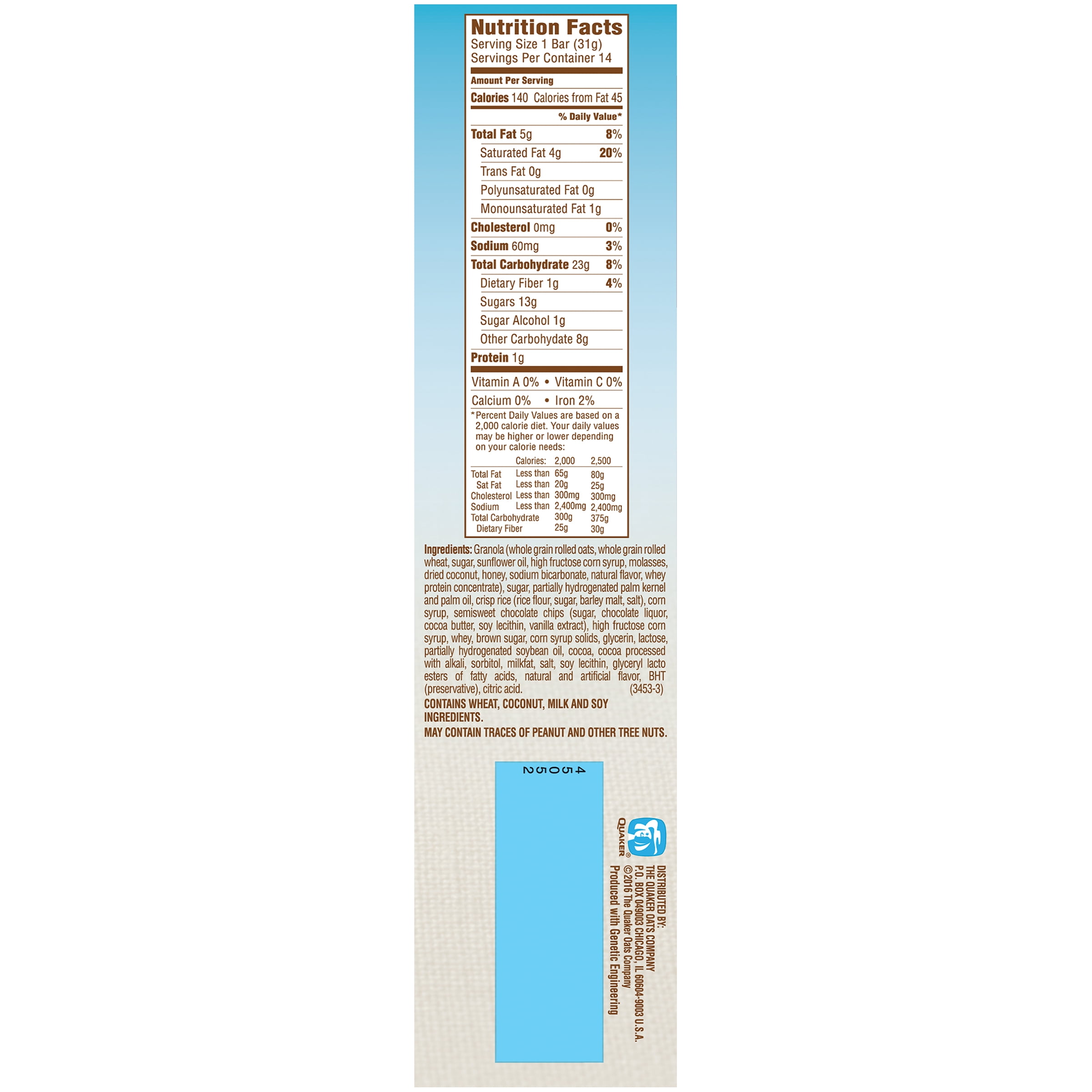 Quaker Chewy Dipps Chocolate Chip Granola Bars are a fun choice . Made with chocolate chips and granola, these chocolatey coated bars are sure to be a favorite snack or quick dessert. Each bar is individually wrapped, making it easy to slip in your child’s backpack or leave in your desk drawer, so you’ll be ready whenever hunger strikes.
