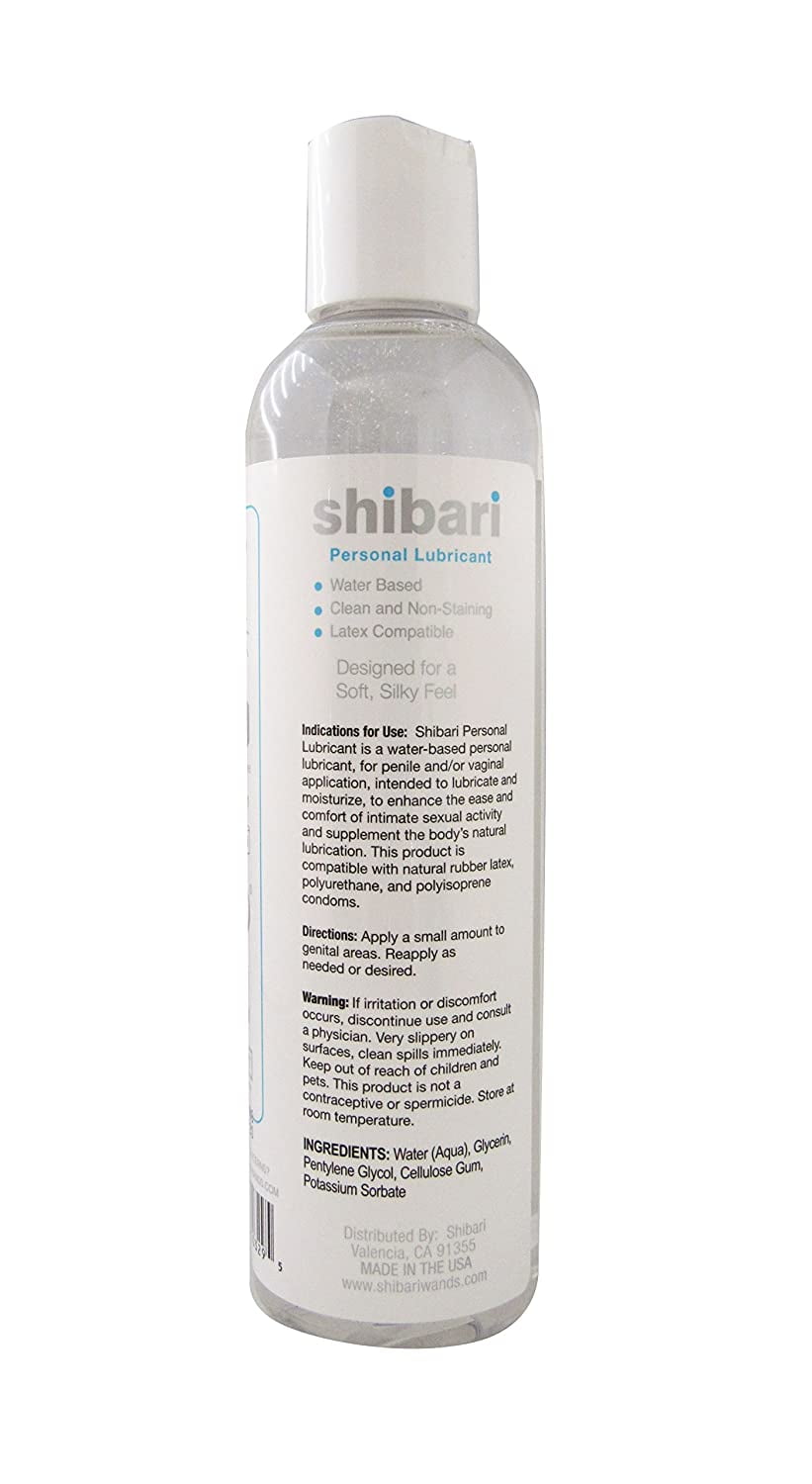 Shibari Intimate Lubricant is a premium water based lube designed for smooth sensation and soft skin. Clean and non-staining with the highest-quality tested ingredients. Shibari Personal lubricant comes in a handy 8 fluid ounce bottle.