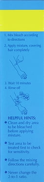The safe, easy to use bleaching cream. Active Ingredients: Bleaching Cream: Water (Aqua); Hydrogen Peroxide; Cetyl Alcohol; Stearyl Alcohol; PEG-20 Stearate; Aloe Barbadensis Leaf Juice; Acer Saccharinum (Sugar Maple) Extract; Epilobium Angustifolium Extract; Honey Extract; Stearic Acid; Paraffinum Liquidum; Propylene Glycol; Methylparaben; Propylparaben. Cream Activator: Water (Aqua); Cetyl Alcohol; Petrolatum; Ammonium Hydroxide; Emulsifying Wax NF; Sodium Lauryl Sulfate; Paraffinum Liquidum; Propylene Glycol; Methylparaben; Propylparaben Uses: Invisi-Bleach is a safe and easy way to lighten facial, arm and leg hair. Clinically tested to gradually lighten unwanted hair to a more natural skin tone shade. One application will soften and fade even dark hair, so it becomes unnoticeable. Invisi-Bleach comes complete with a mixing tray and plastic spatula for easy to use application.Surgi Invisi-Bleach Gentle Formula Bleaching Cream, 2 Oz