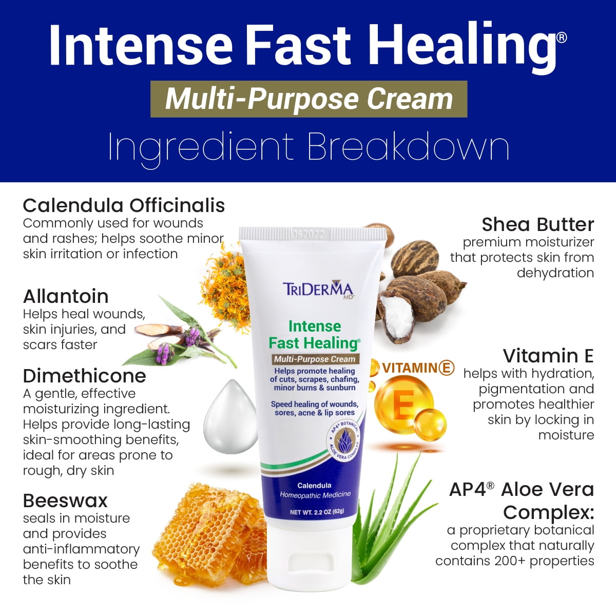 TriDerma Intense Fast Healing Skin Cream, Speeds Healing of Wounds, Sores, Acne and Lip Sores 2.2 oz