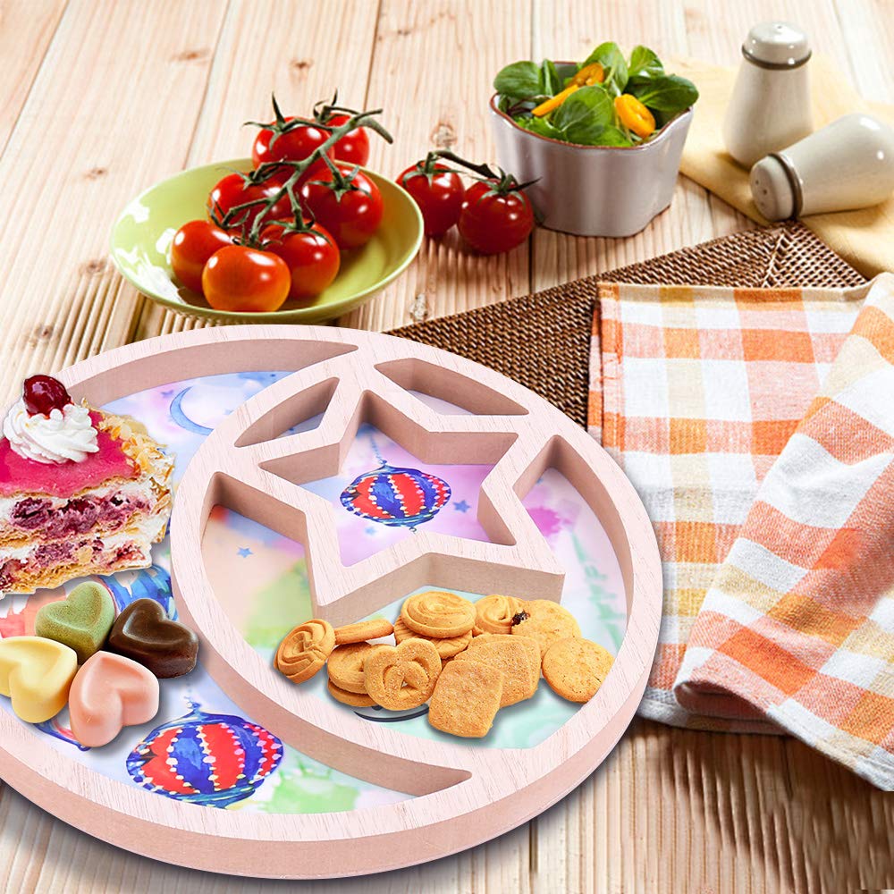 Ramadan Kareem Serving Tray Moon & Star Dessert Trays Wooden Food Platter Plates for Islamic Muslim Eid Mubarak Party