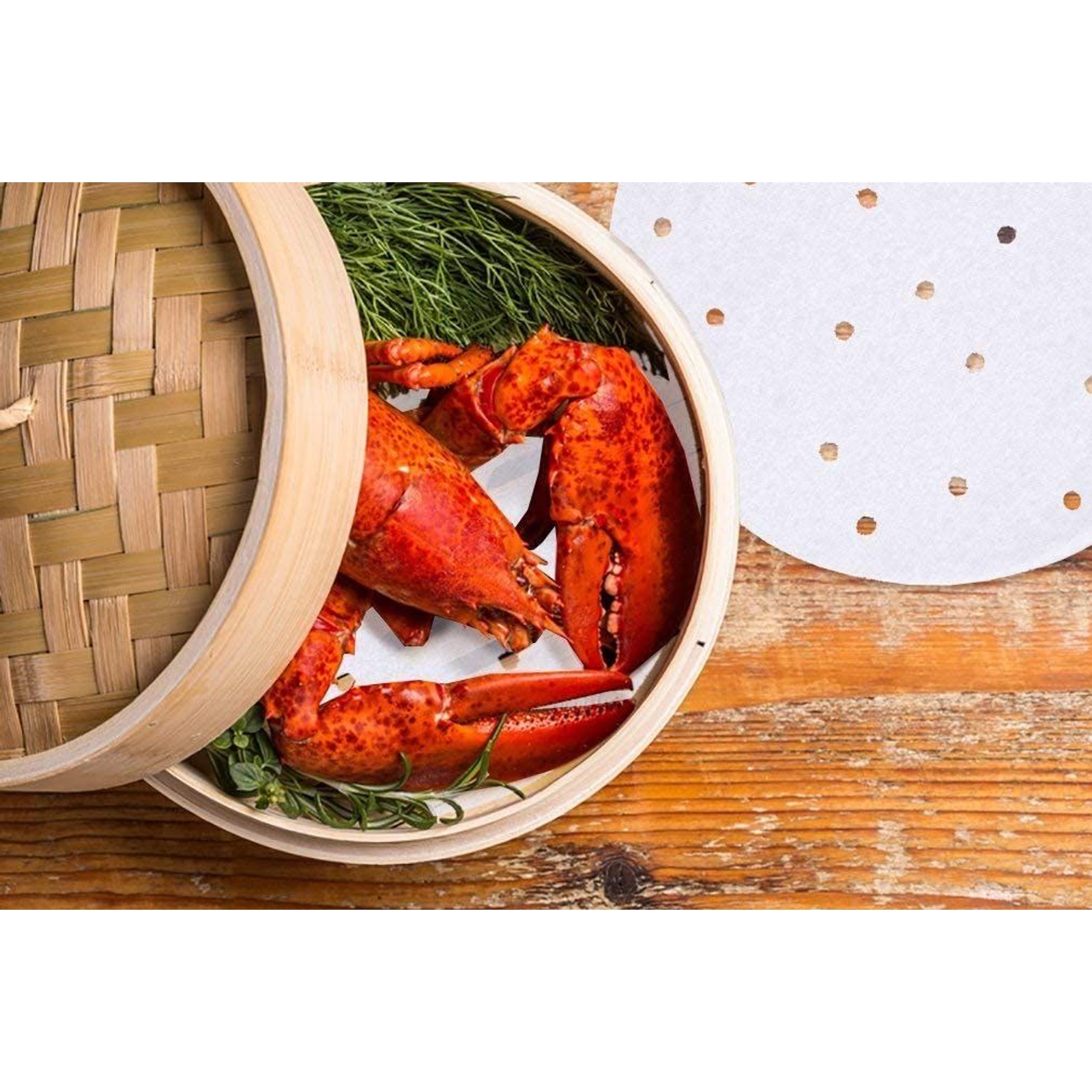100 Pack Steamer Pot Perforated Parchment Liners 8 Inch Round, Bamboo Steamer Paper (White)