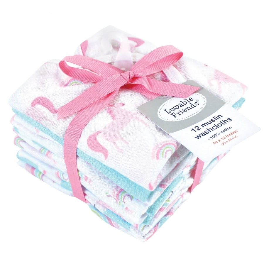 Luvable Friends Baby Girl Muslin Washcloths, Rainbow, One Size