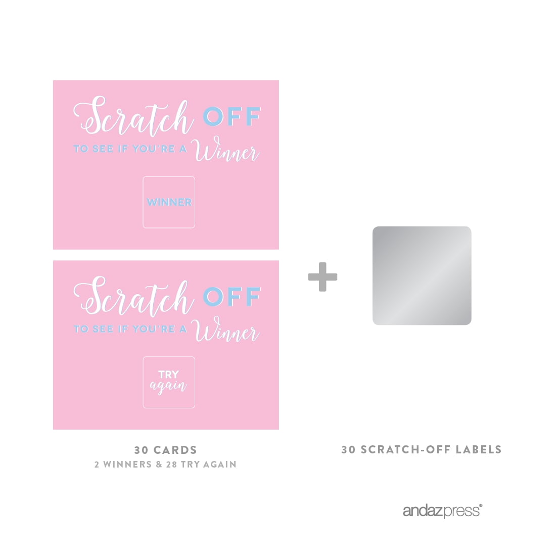 Signature Pink and Blue Gender Reveal Baby Shower, Game Cards Scratchers Scratch to Win, 30-Pack