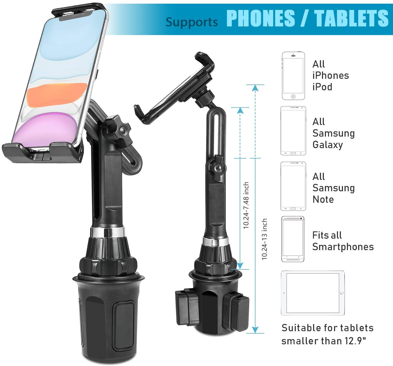 Luxmo Cup Holder Phone Mount & Tablet Holder Mount for Car, 2-in-1 Car Cradles with Adjustable Neck Extended Cup Holder for Cell Phone iPhone, Samsung, Google & iPad Air/Mini