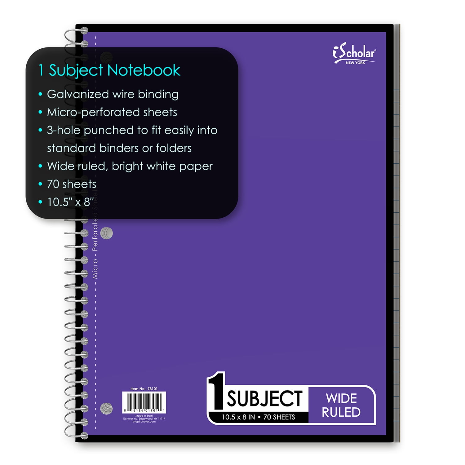 iScholar 1 Subject Notebook, 10.5′ x 8′, Wide Rule, 70 Sheets, Purple (78101-PU)