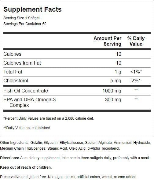 Supportive but not conclusive research shows that consumption of EPA and DHA Omega-3 fatty acids may reduce the risk of coronary heart disease.* One serving of 21st Century?s® Oil provides 300 mg of EPA and DHA Omega-3 fatty acids. (See supplement facts for total fat and saturated fat content). These Omega-3 fatty acids help maintain cholesterol levels which are within normal range. 21st Century?s® Oil contains the highest quality molecularly distilled fish oil concentrate.