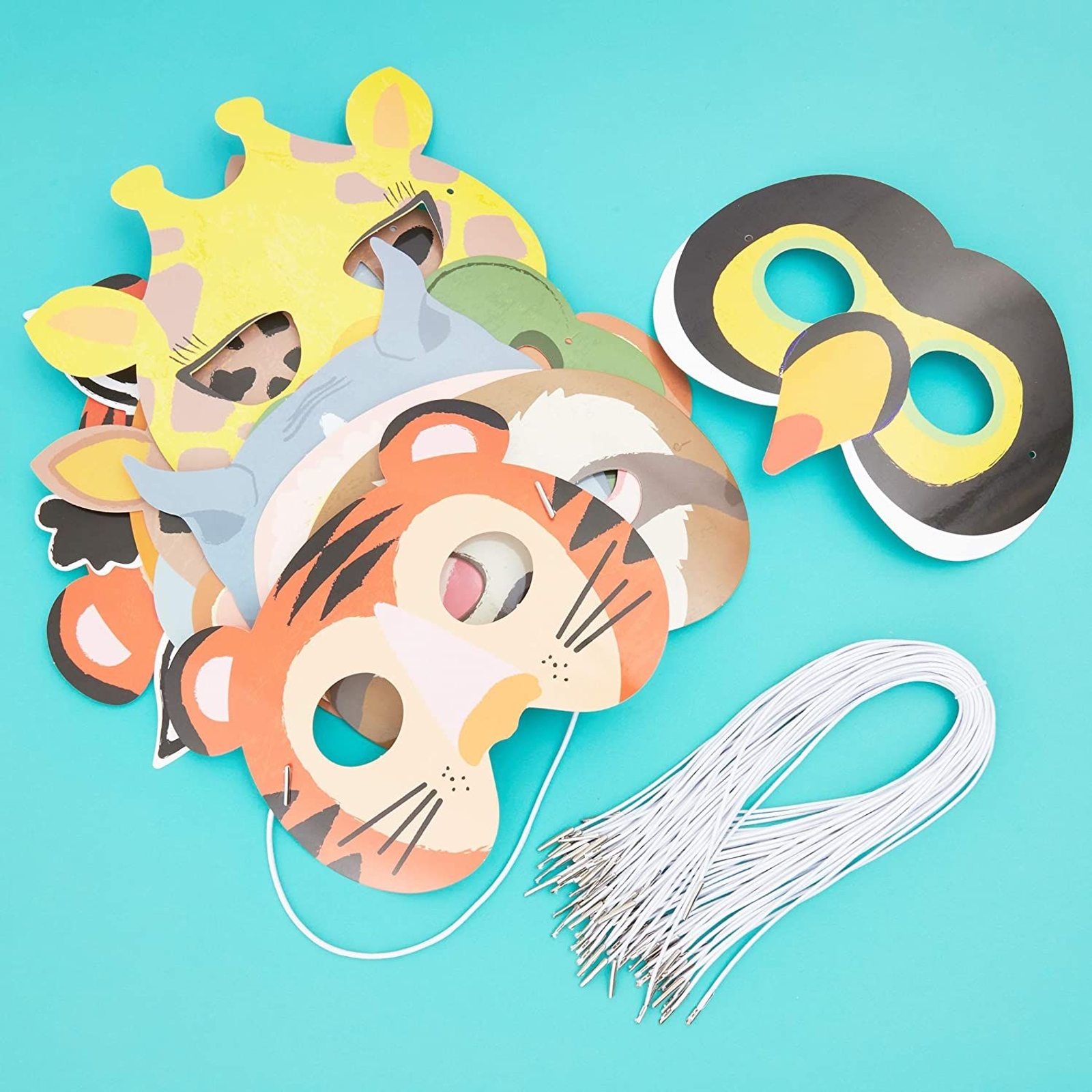 Give your kids’ birthday party a cheerful vibe with these fun safari photo booth props. Our jungle animal party masks come pre-assembled with an elastic string and are adjustable on to fit the faces of most kids and adults. These photo booth props are a great way to kick off the fun as guests arrive at your birthday party, Halloween party, or school celebration. Each pack comes with 24 animal masks, featuring 12 total designs, 2 of each animal. Our masks are made of thick 300gsm laminated cardstock and measure 7 x 5.25 inches. Each pack comes with 24 animal masks and 24 elastic string, featuring 12 total designs, 2 of each animal.