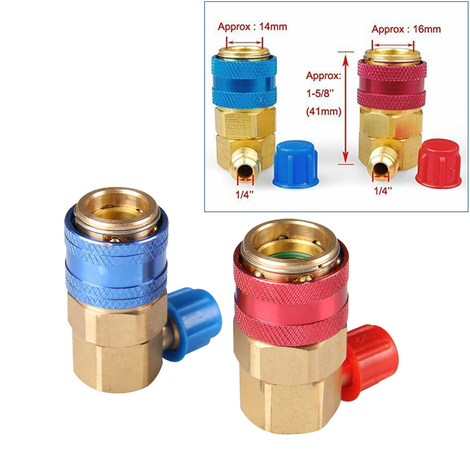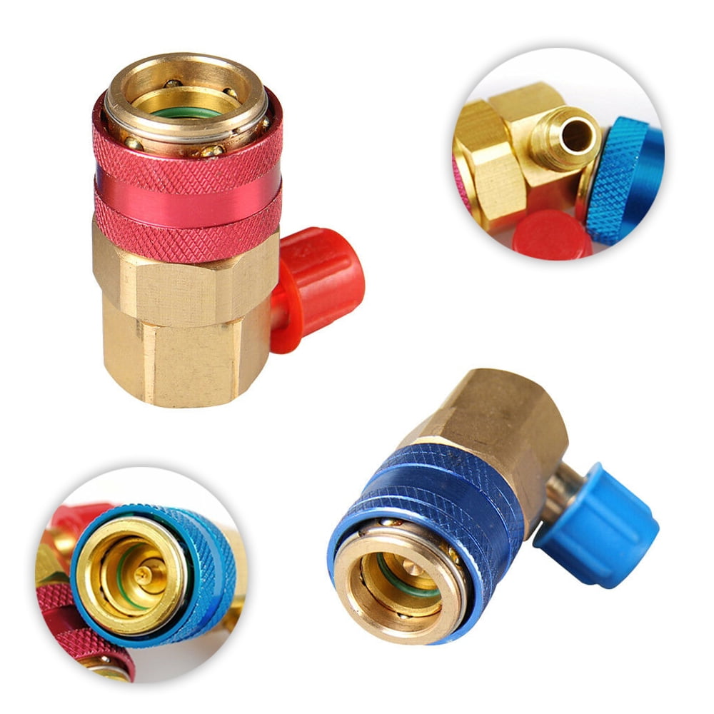 Description: These Quick Couplers offer you the best convenience to attach the manifold hoses onto the Automotive/Car Air Condition R134a system during the diagnosis, charging, or evacuation.