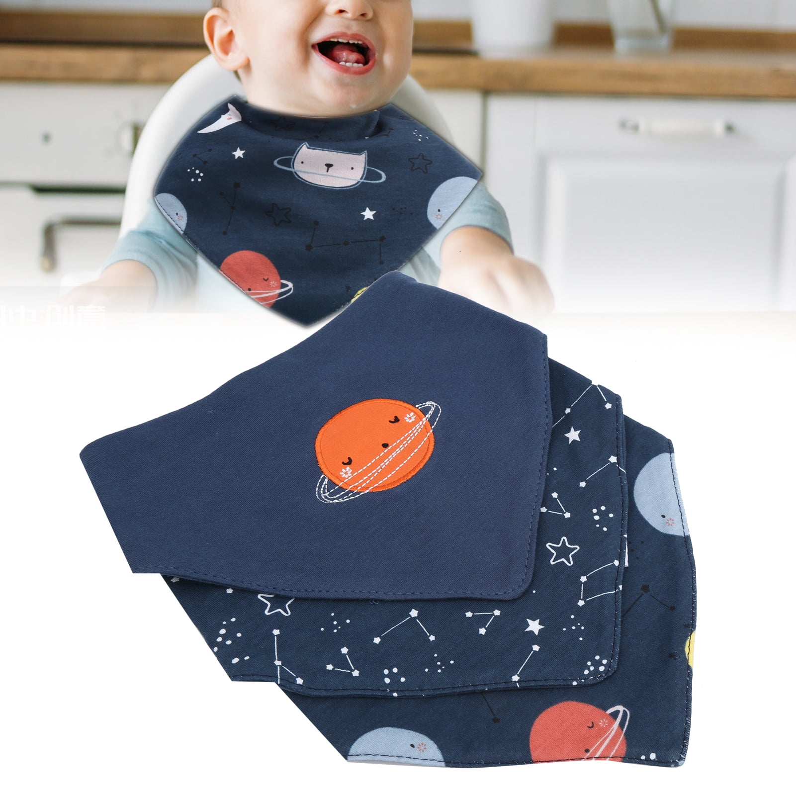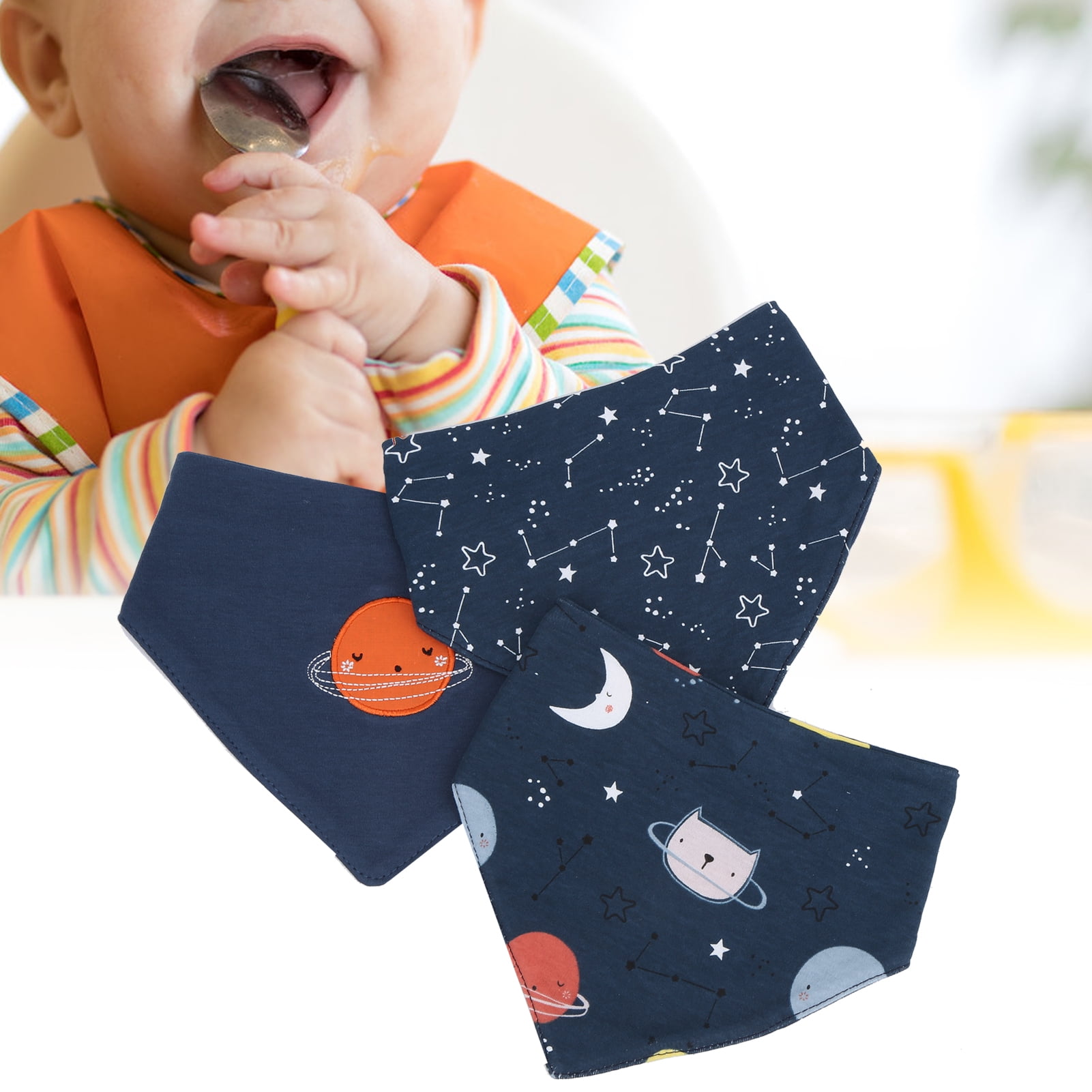 3Pcs Baby Burp Slobber Cloth Space Type Pure Cotton Dribble Bib for 3-24 MonthsSpace