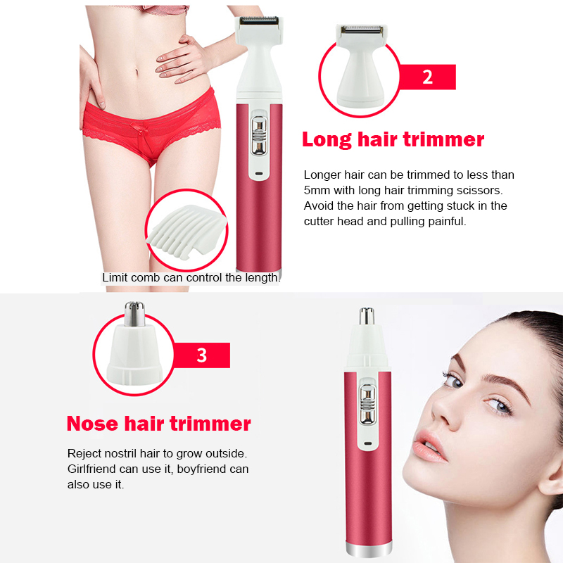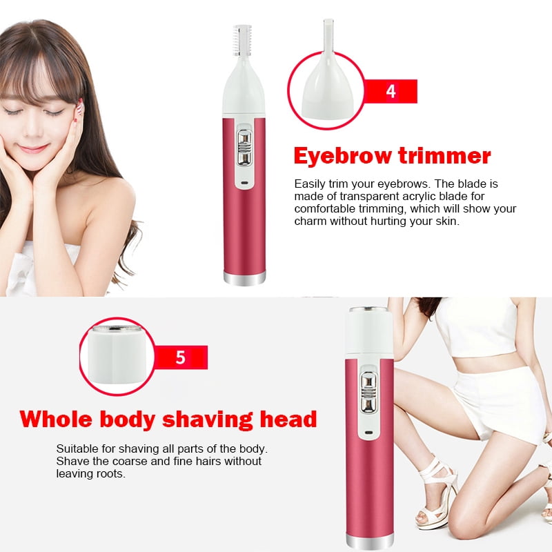 - One machine with five uses, 5 cutter heads (long hair trimming, short hair trimming, one net with double knives, nose hair trimming, eyebrow trimming)