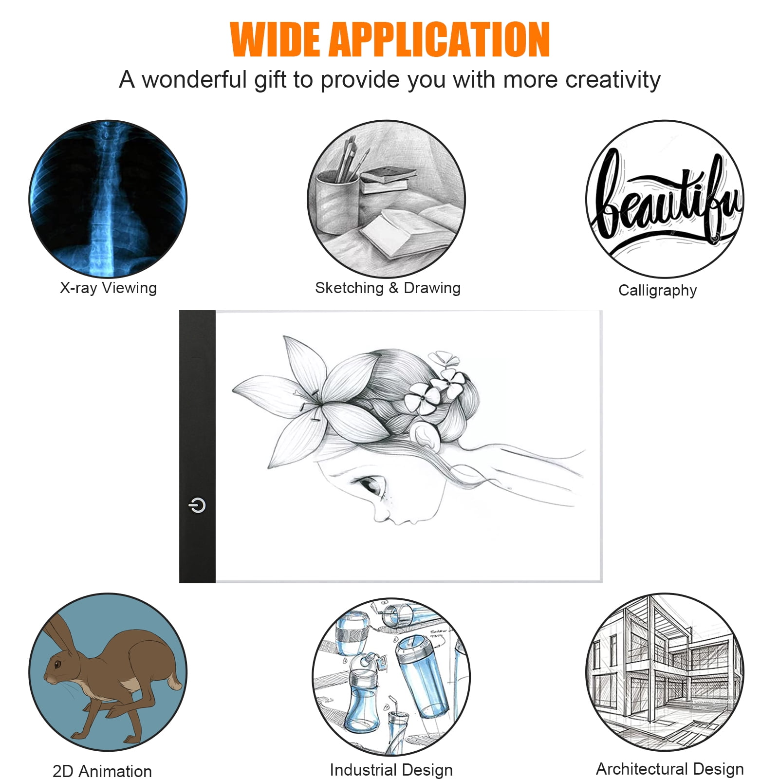 - LED tracing light pad: Clearly illuminates the images, easily tracing images
