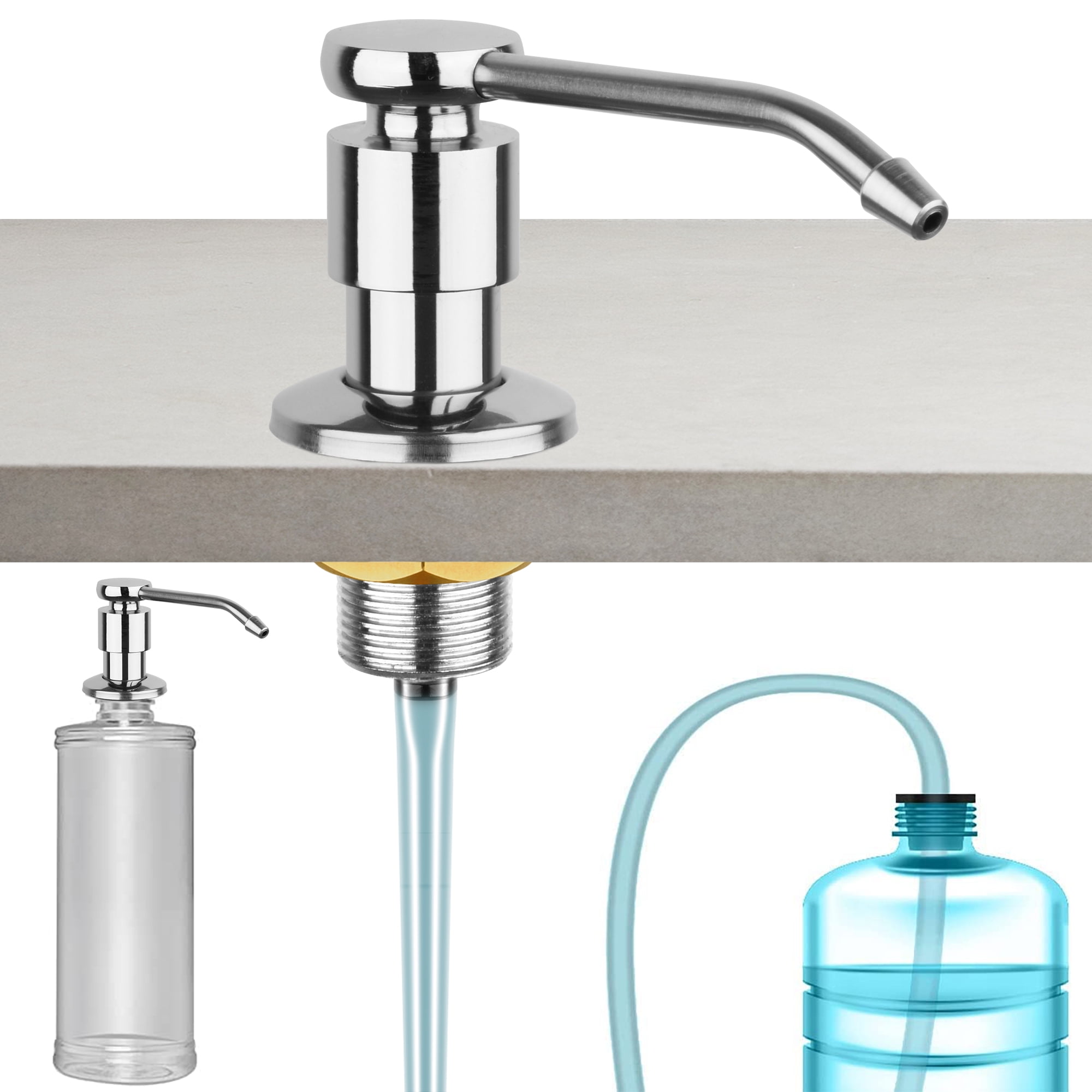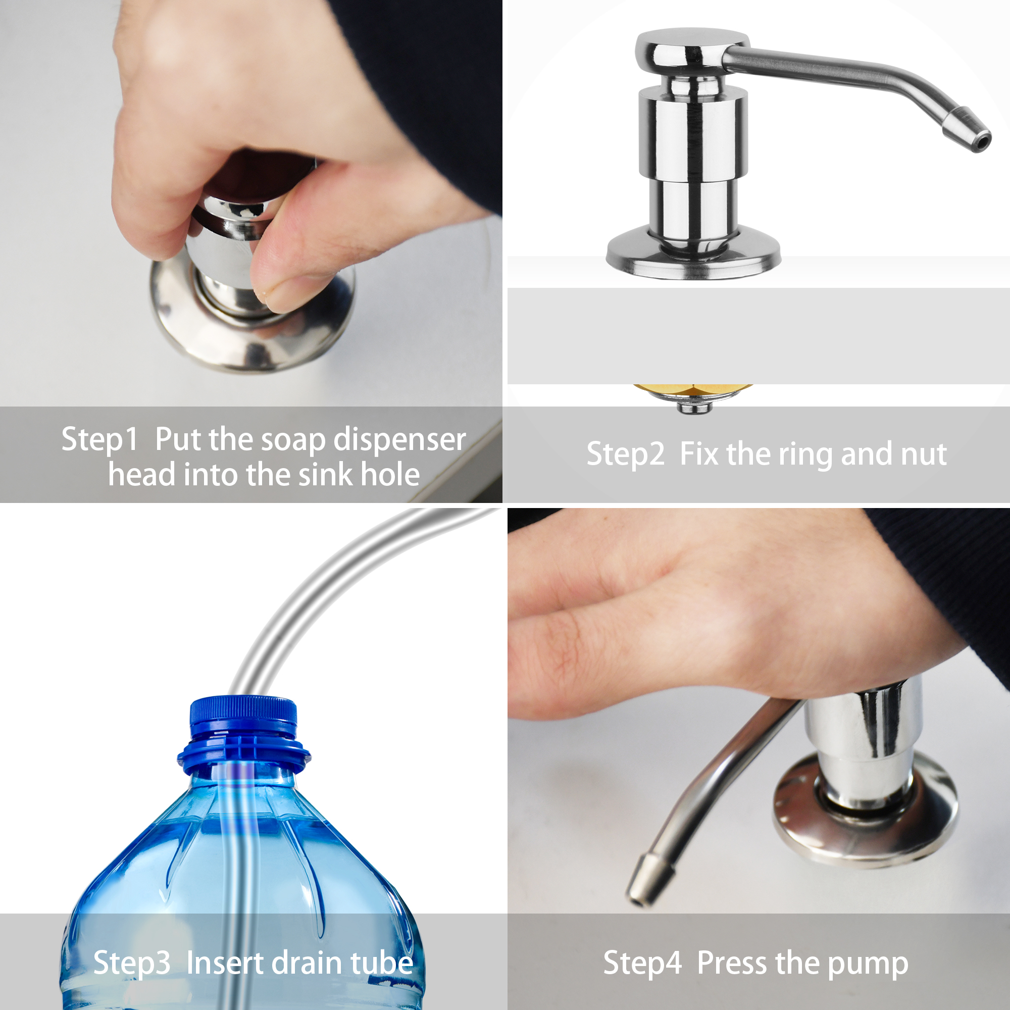 - 【NO FILLING FREQUENTLY】Simply remove dish soap pump head and pour in soap from the top. With 47" sink soap dispenser extension tube kit, use the big bottle directly. No leak, save time.
