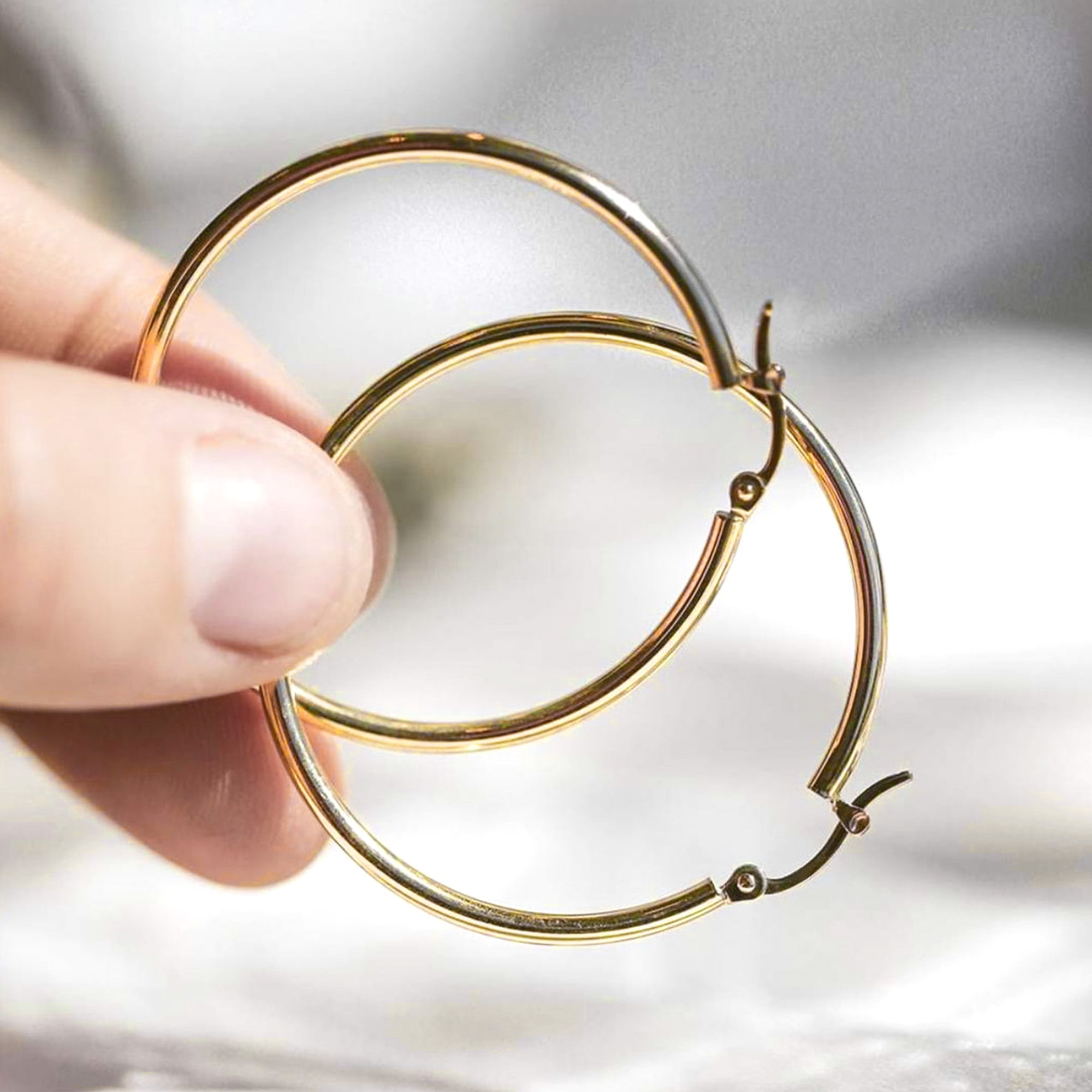 CLASSIC DESIGN:Hoop earrings in high polished finish.Simple yet not vulgar.Lightweight,cute small.Shiny.