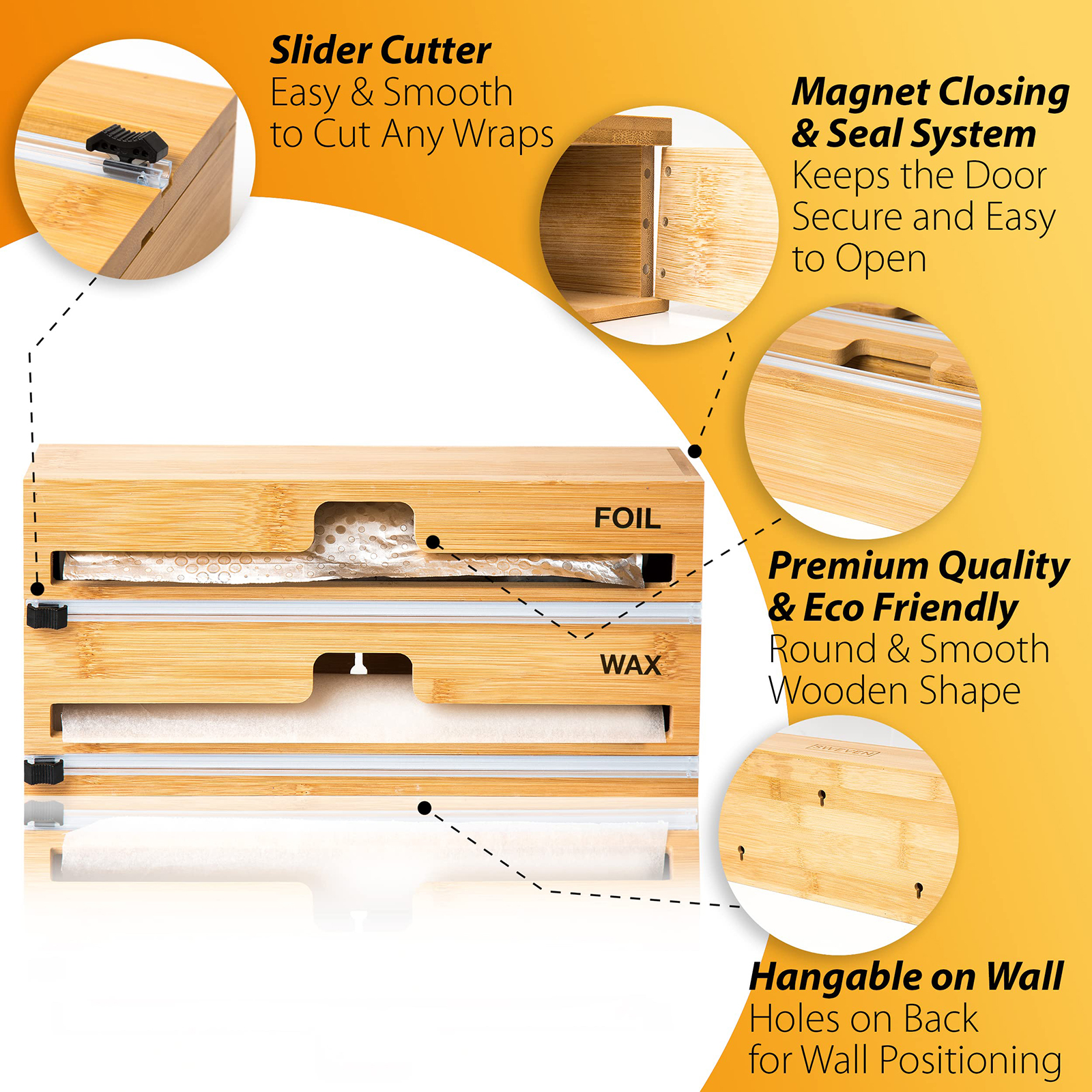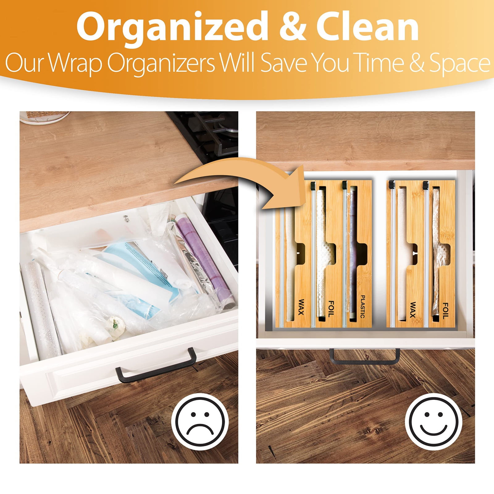 - PREMIUM QUALITY – Our kitchen wrap organizer is made with premium thick bamboo to ensure there are no cracks or broken pieces. We want your kitchen organization to stay so we design our products to last!