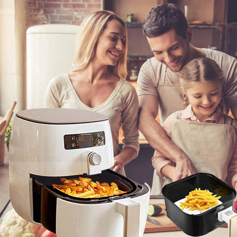 Our air fryer parchment paper made with nonstick food-grade premium quality baking paper, no matter which side you can safely use it safe, high temperature air fryer lining control, put grease, waterproof, an indispensable air fryer accessories.