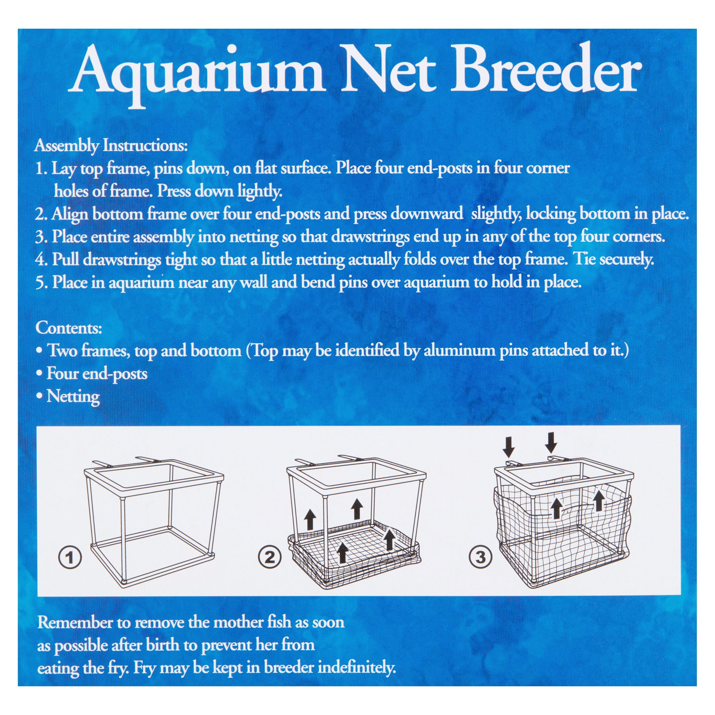 This multi-purpose isolation net will help protect newborn fry from their mother or other fish and safely house injured fish, so they are given time to heal or isolate aggressive fish from harming others or themselves. Assembly and installation of this net breeder are quick and easy simply snap all of the pieces together, secure the netting around the frame, and hang it near any wall of the aquarium.