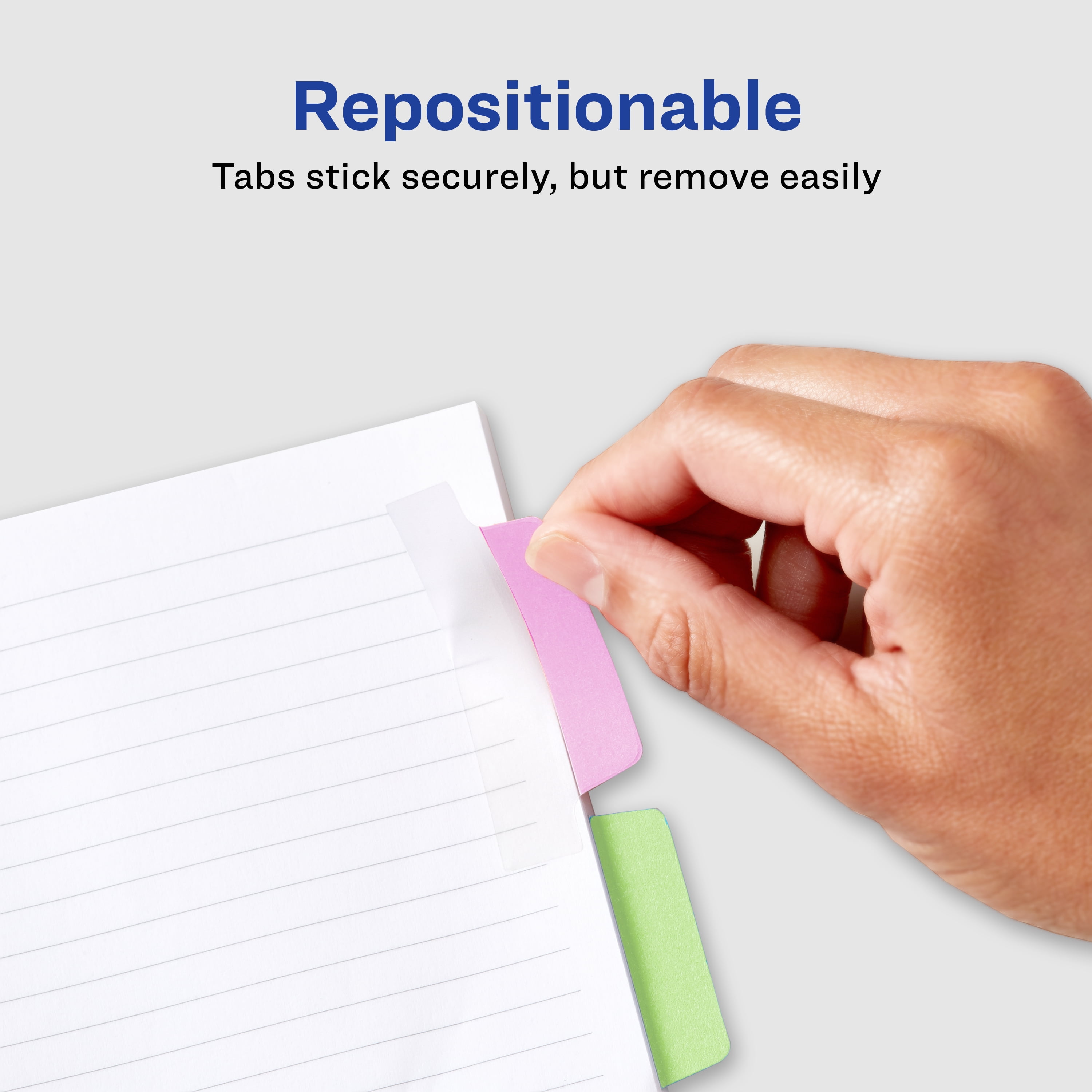 - Repositionable adhesive tabs stay secure but also remove cleanly to prevent damage and residue