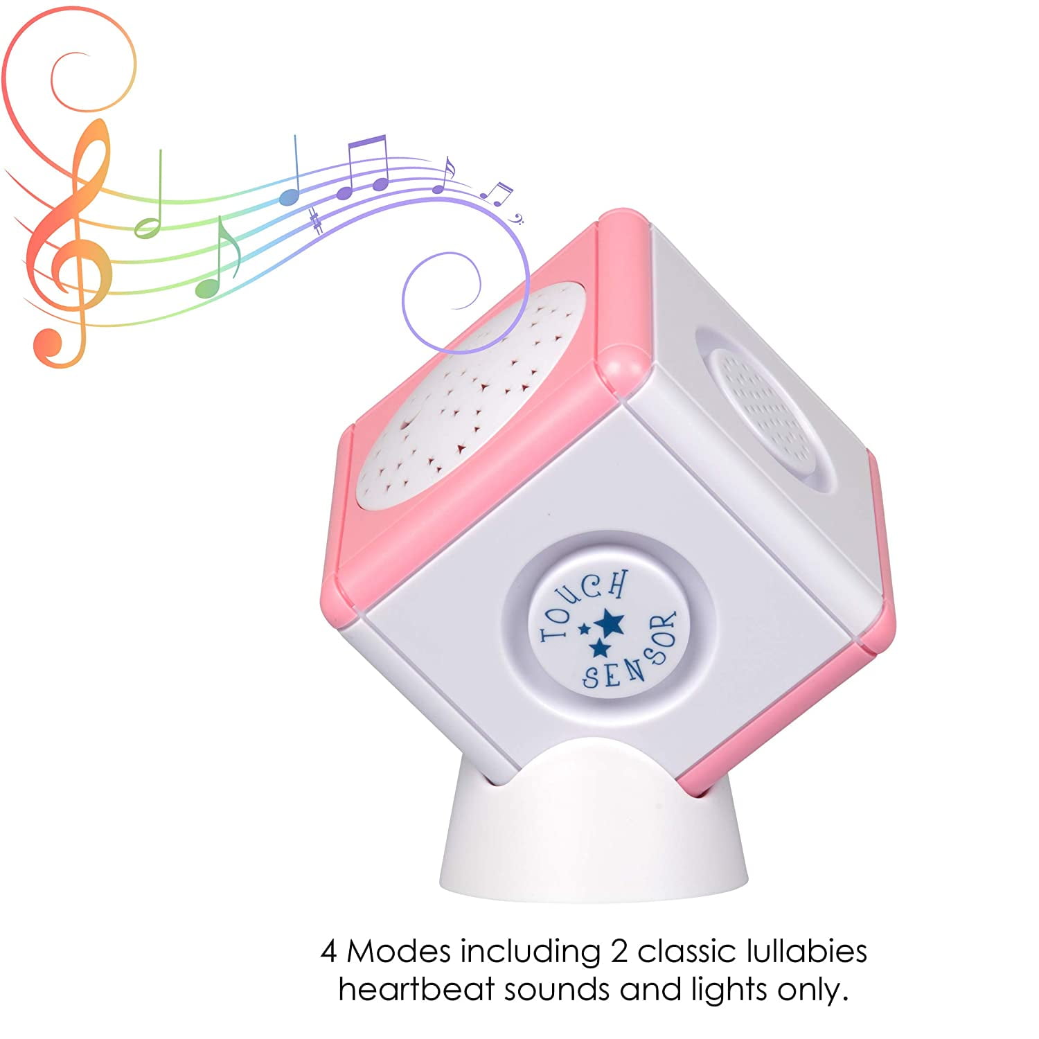 Baby Soother – Lullaby Light Cube Portable Musical Night Light Soother and Star Projector with Touch Sensors – (Pink)