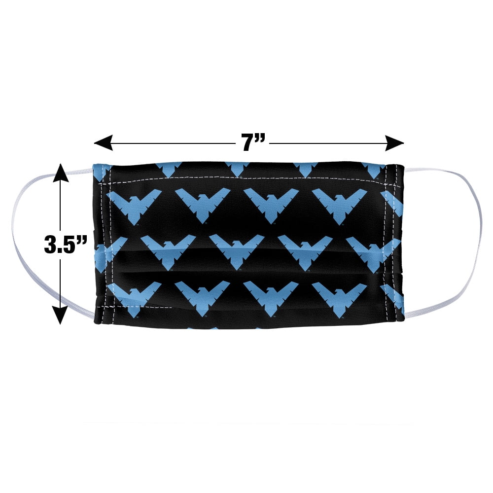 - BATMAN NIGHTWING LOGO PATTERN FACE MASK – Our 100% polyester mask is made with 1 layer that is printed with your favorite design.