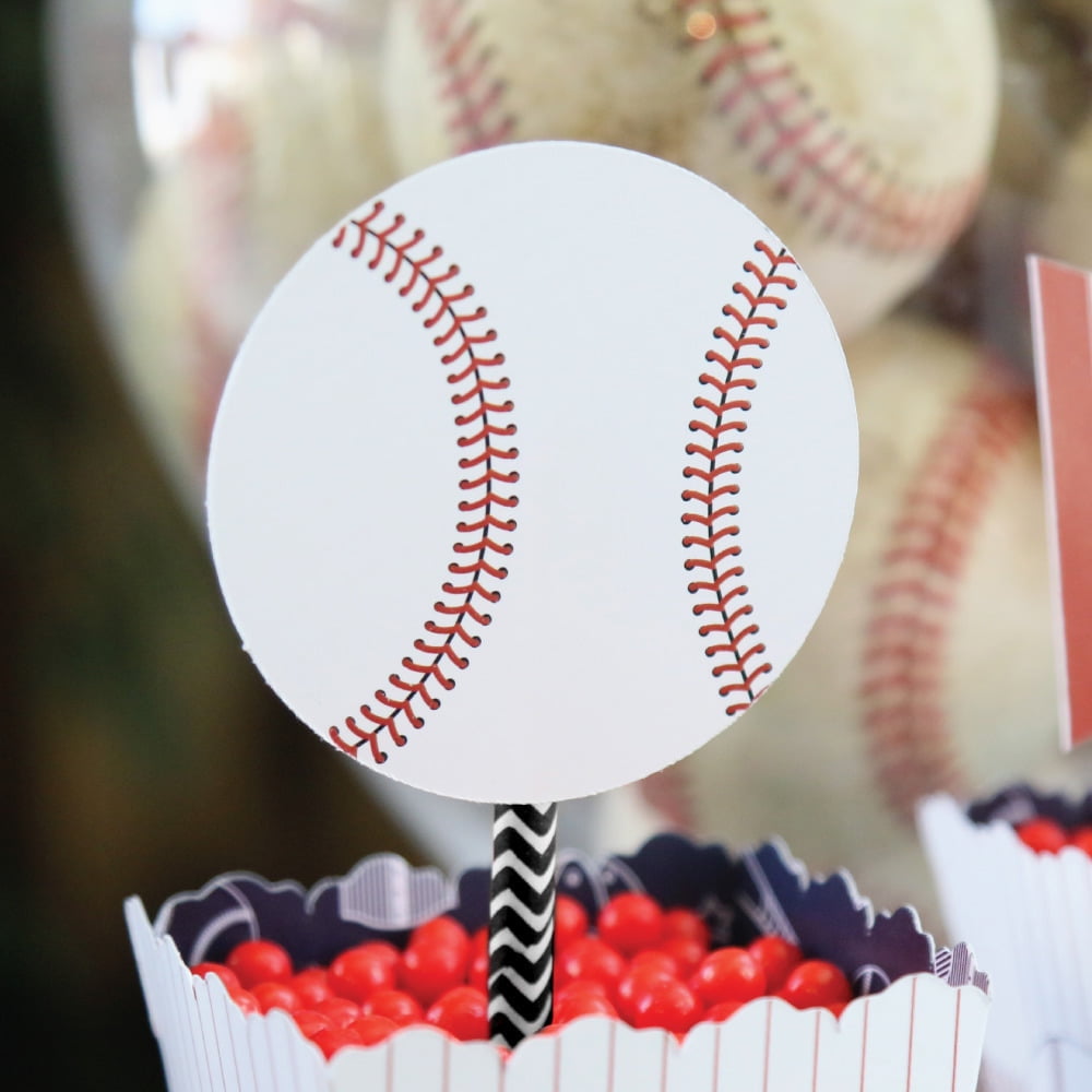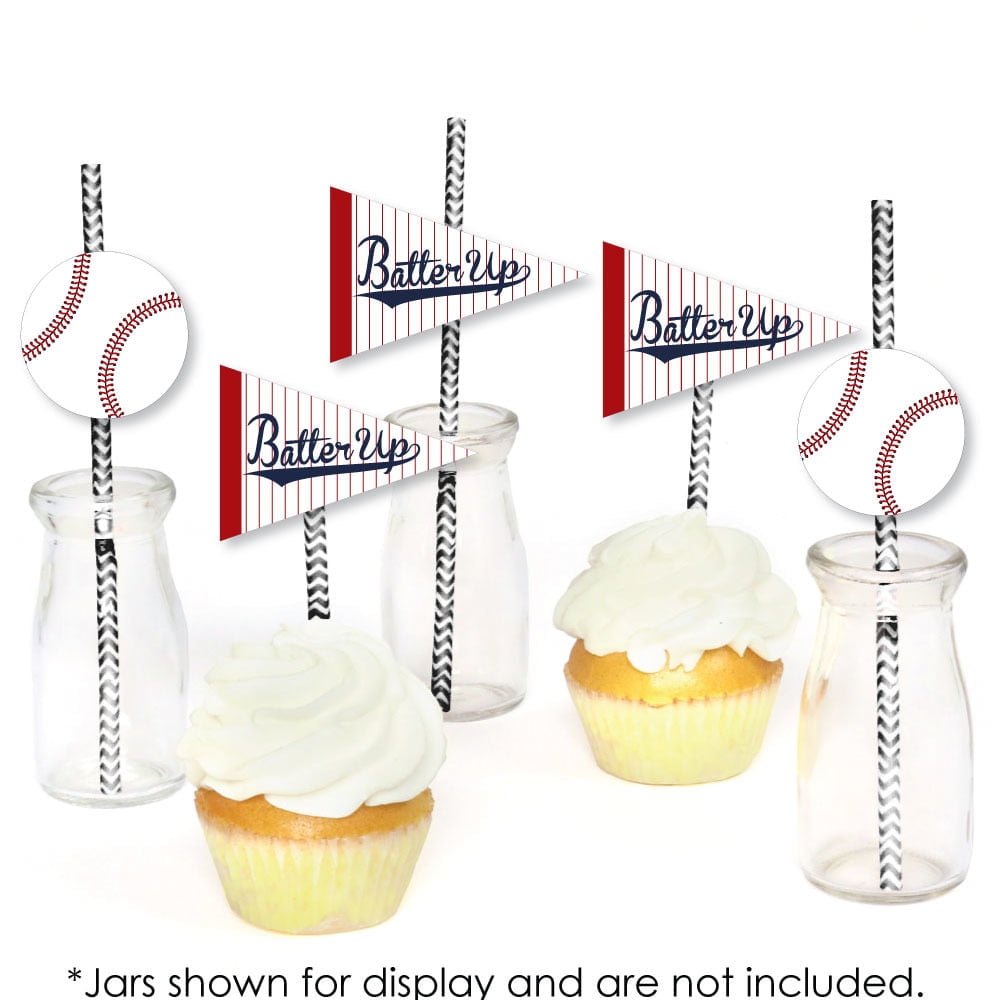 - EASY PARTY DECORATIONS: Batter Up – Baseball straw décor will add a touch of style to your baby shower, birthday or graduation party tables. All-star sports straw décor will also look great at your beverage bar. Use these adorable baseball party accessories as straws or swizzle sticks. The paper straws can also be cut in half and used as cupcake picks once the shaped cut out is attached.