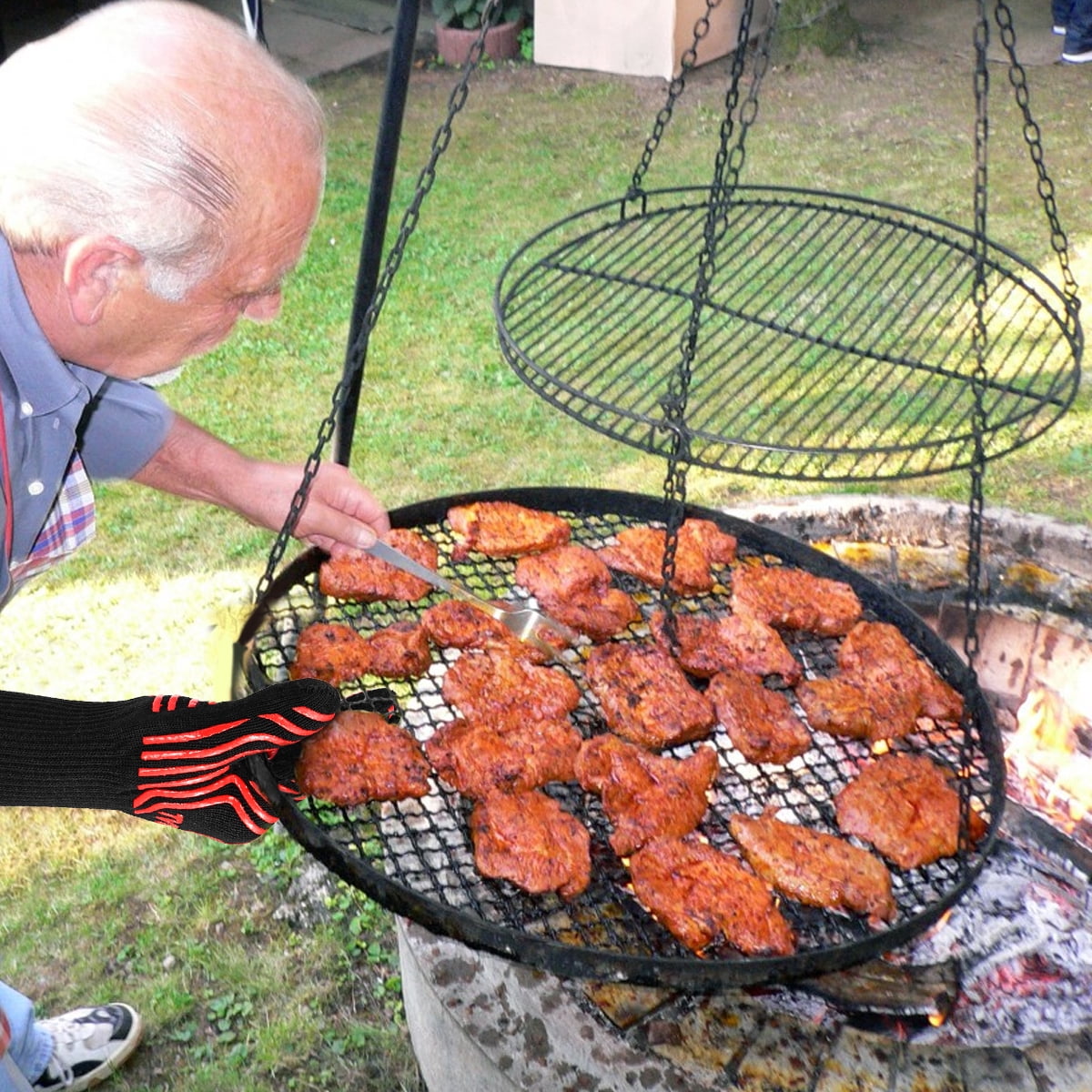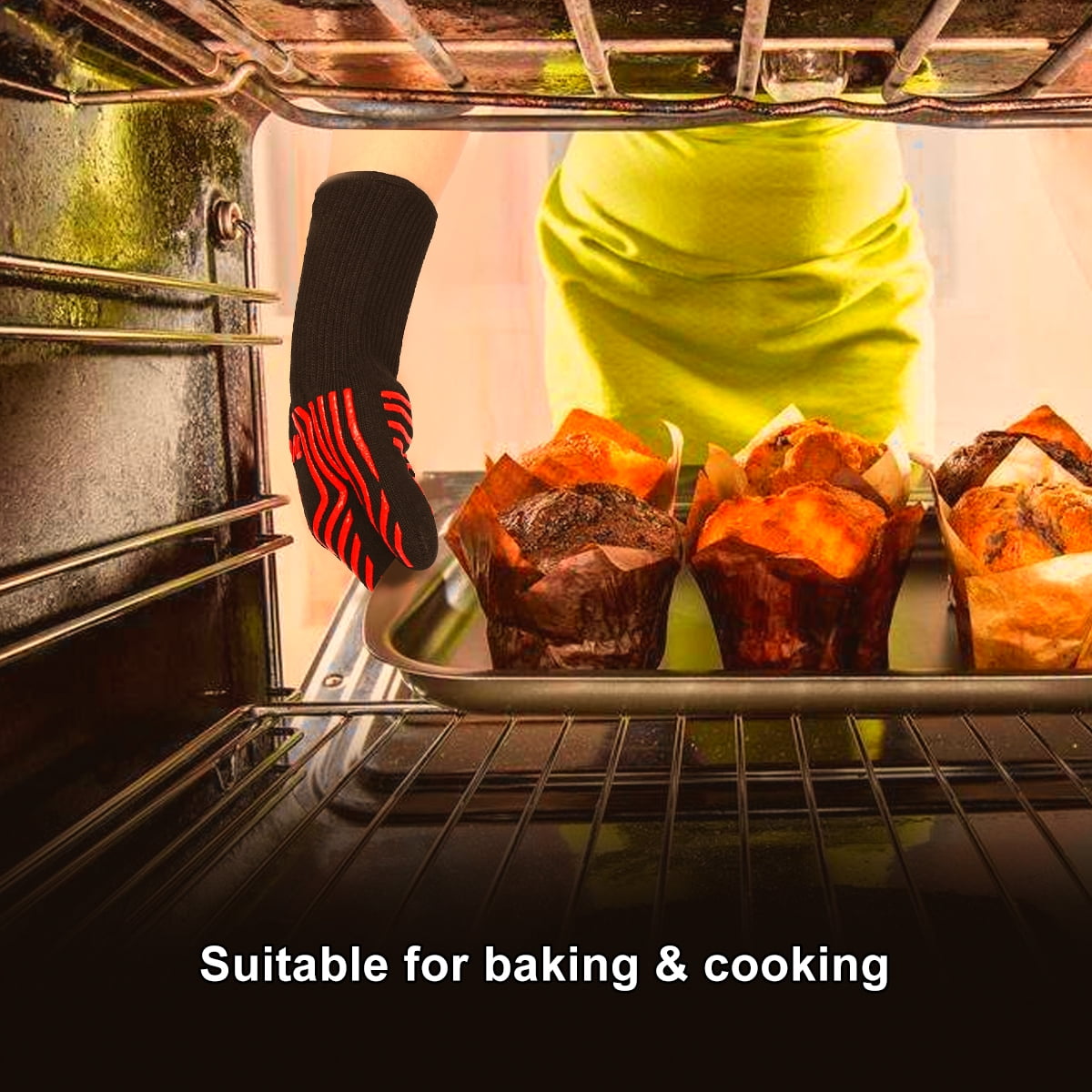- Extreme Heat Resistance 1472 °F (800 °C) and Forearm Protection. BBQ Gloves can withstand extreme temperatures up to 1472ºF (800 ºC) and long cuffs protect your forearm and wrist when you are deep in the oven, barbecuing.