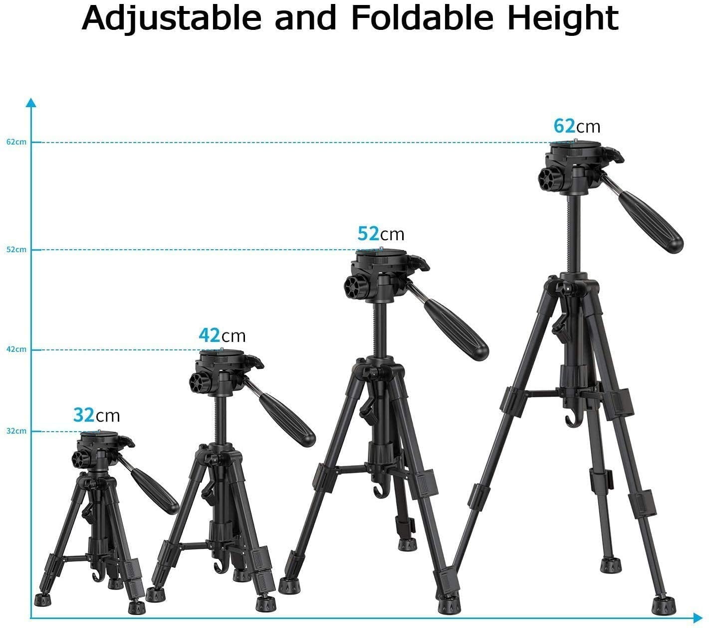 Compact And Easy To Carry: The tripod is only 12.59 inches, so that you can easy to carry it. The tripod supports foldable, you can easily store it in the included bag when you’re done with it.very suitable for outdoor travel and family use, the included carrying bag further enhanced portability.