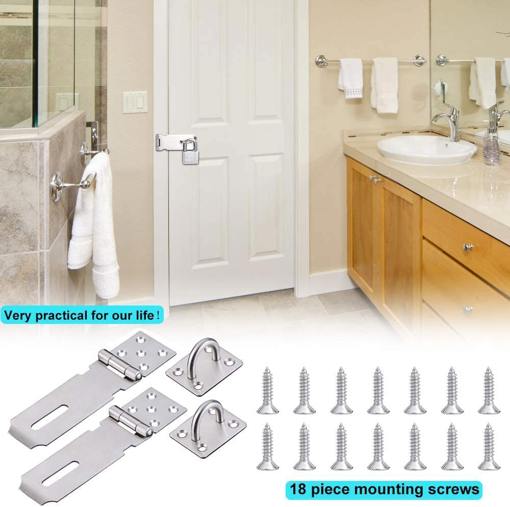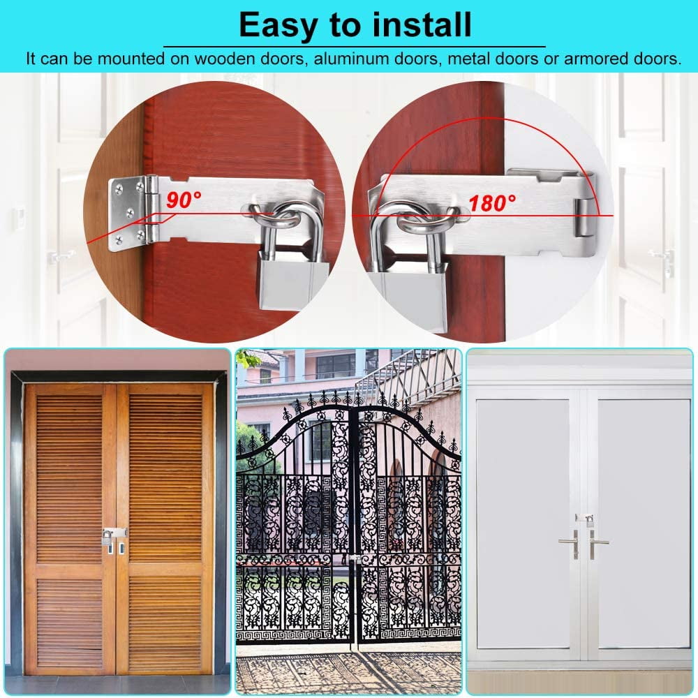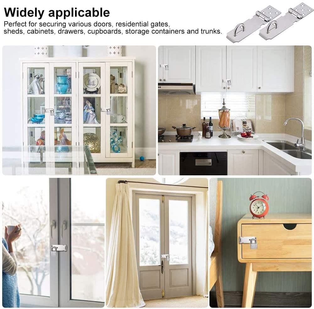 The heavy duty hasp latches offer an easy solution to keep your small items safe and secure. Perfect for a variety of doors, cabinets, windows, sheds, drawers, lockers, pet gates, tool boxes and so on.