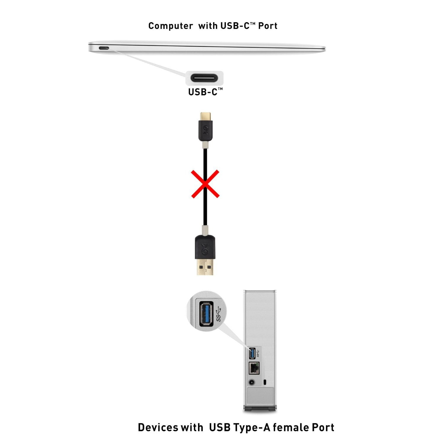 – This is not designed to connect a host computer with USB Type-C port to USB peripherals with USB Type-A port (such as an external hard drive).