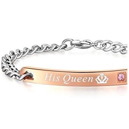 Couple Matching Bracelets Set, His Queen Her King Couple Lovers Unisex Jewelry Gifts Chain Titanium Steel Bracelet