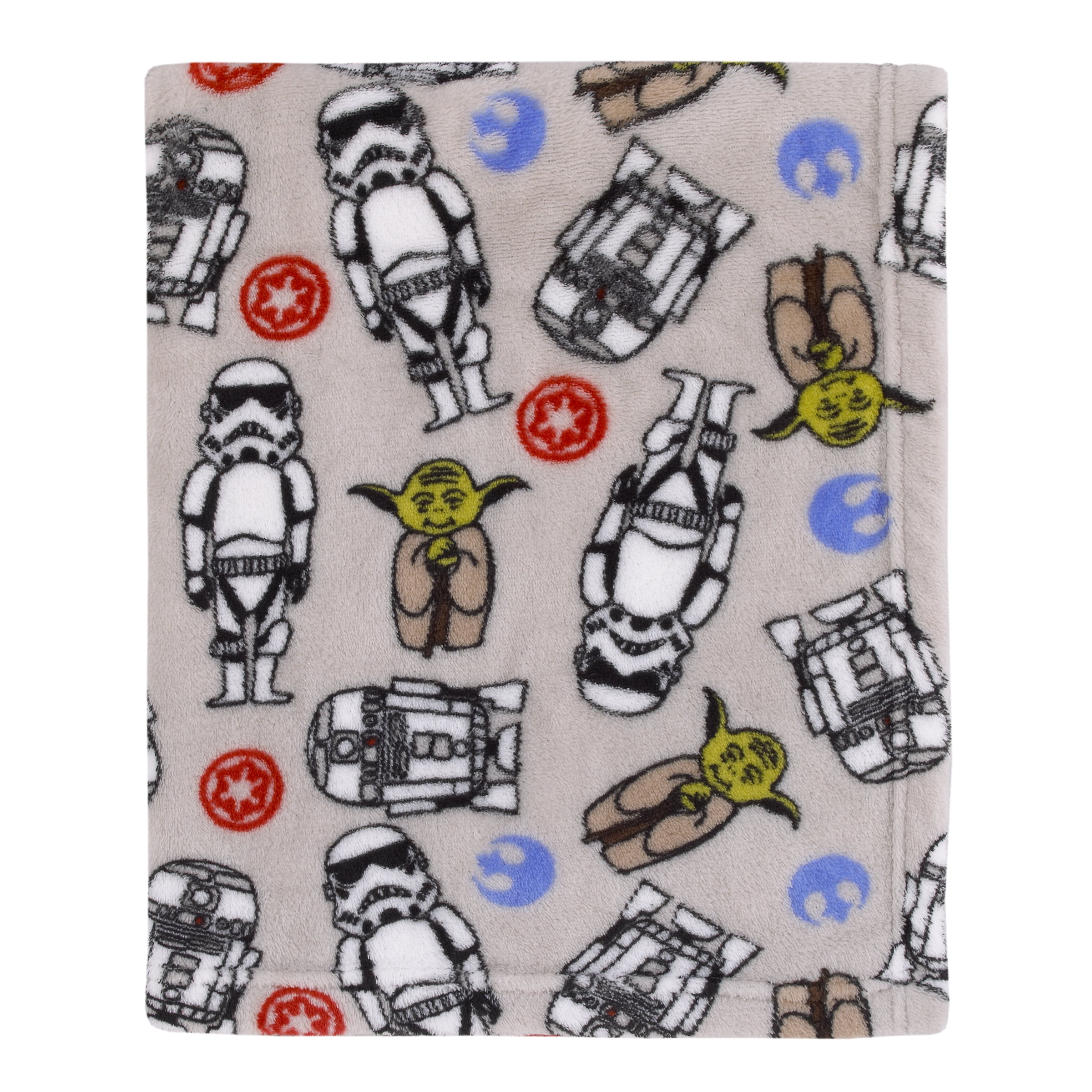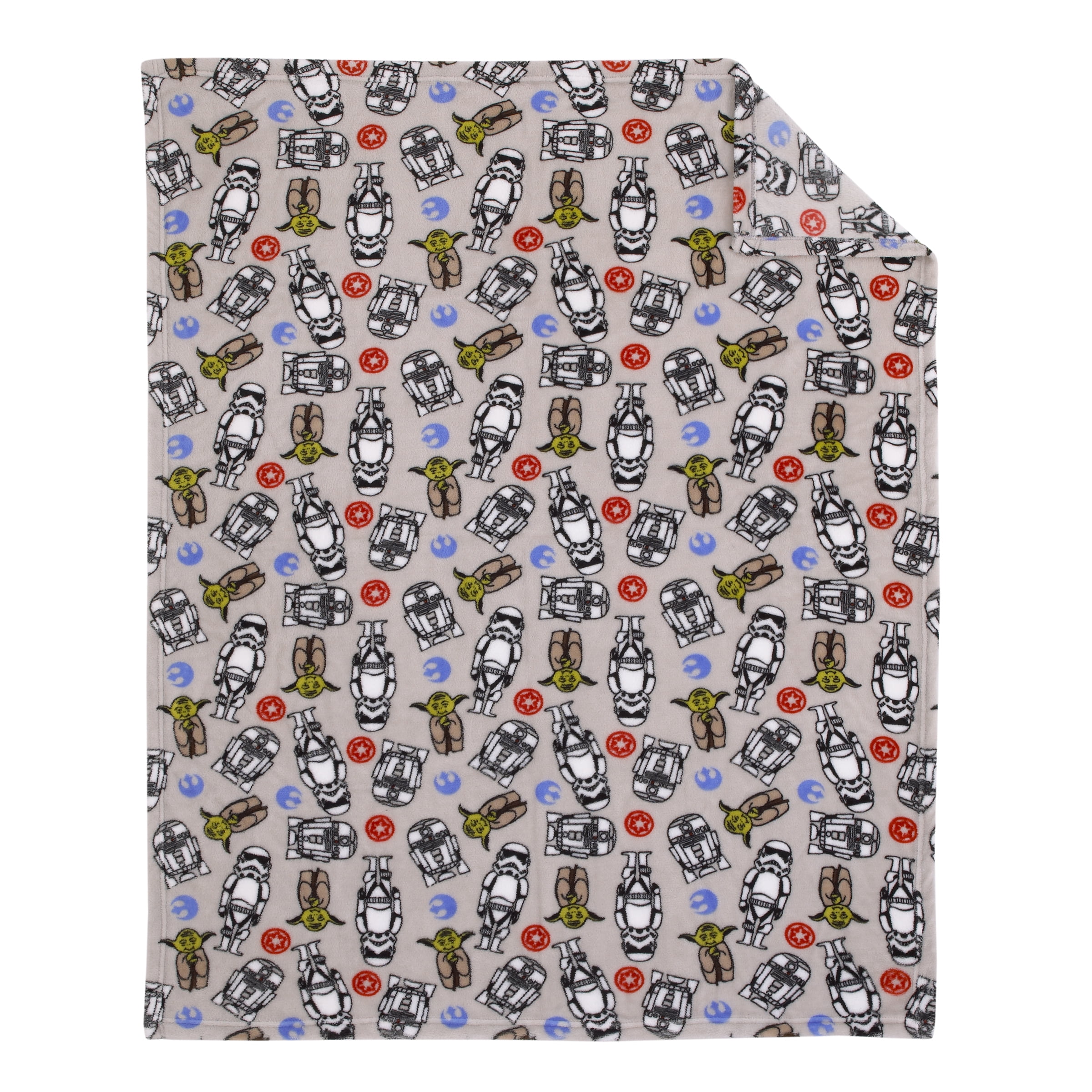 Cuddle up your little one in this Disney Star Wars Toddler Blanket and Sleep Mask. This super-soft blanket features an allover print design with classic Star Wars characters. In light gray, this blanket will add to any bedroom decor with one of your child’s favorite Star Wars characters like R2D2, C3PO, Yoda, and a Storm Trooper. Make this cuddly blanket essential to you and your toddler for travel, running errands or for all-around use. Measuring 40-inches by 50-inches, the blanket is made of 100% polyester and comes with a blue sleep mask. This blanket is the ideal gift for Christmas, birthdays, or any special occasion. Keep your little one warm and happy with the Disney Star Wars Toddler Blanket and Sleep Mask.