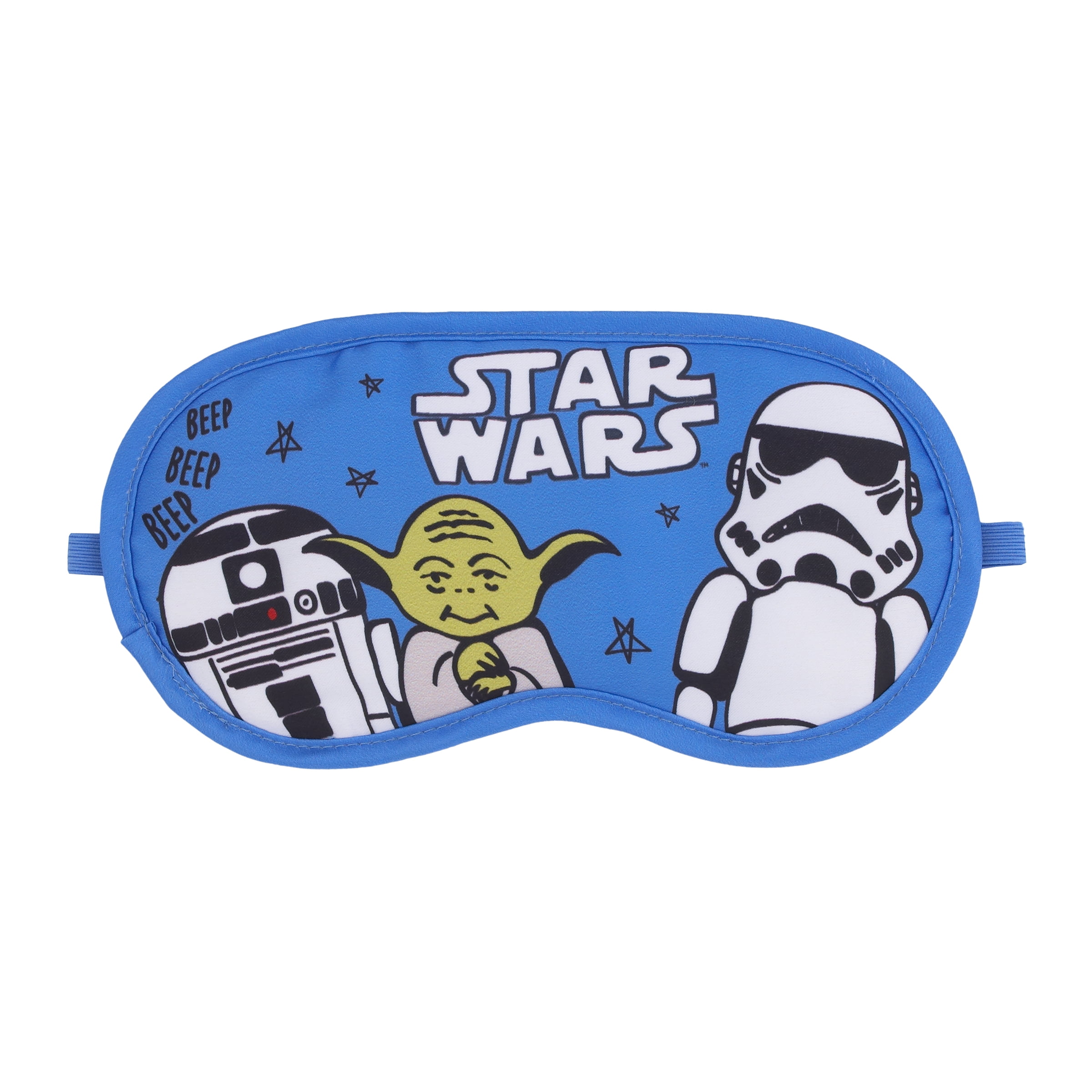 - Eye mask features Yoda, C3PO, and R2D2
