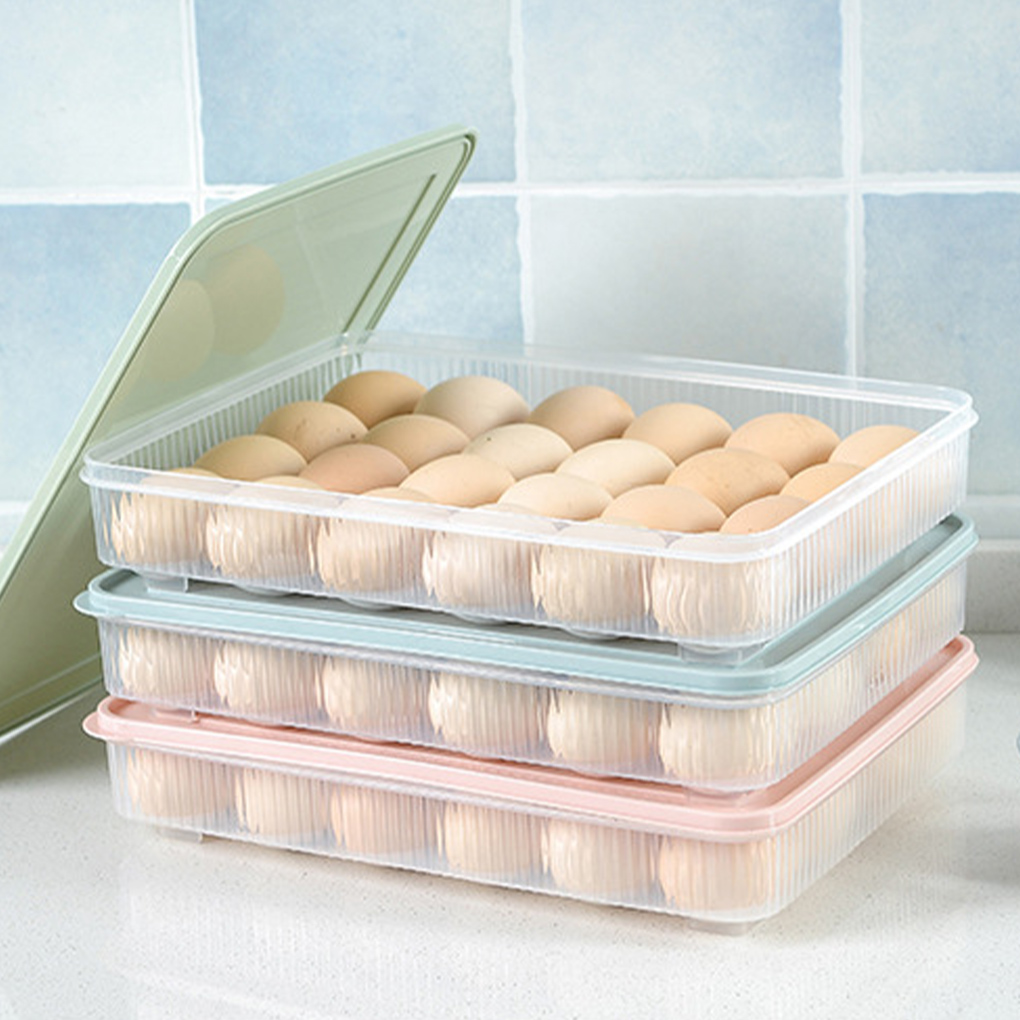 1x egg holder.This kind of egg holder is made of plastic material, which is durable and not easy to be broken, you can use it for a long time|There are designed with 24 slots of the egg organizer that are enough to meet your different kinds of needs, you can order according to your need|There is designed with cap, and the cap is designed with groove edge that is convenient for you to stack and store, avoiding damaging the egg|The heightened base is anti-slip, you can use it without worrying about falling off, making your cooking more convenient and keeping your kitchen in order|This egg storage container is designed with proper size that is convenient for you to store, will not take so much space