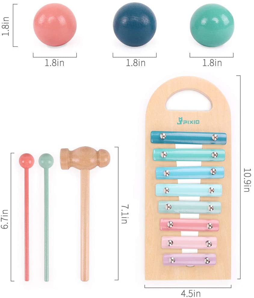 - 【Exquisite Gift】Pound, tap and roll,the music set is a perfect gift ,is a great choice for toddlers toys, allowing them to learn about music and melody as early as possible. A great montessori educational wooden musical toy,because it is very interesting, educational, safe and can meet their development needs. Give your child a birthday, Christmas, your thoughtful gift will show a bright smile on the cute little face.